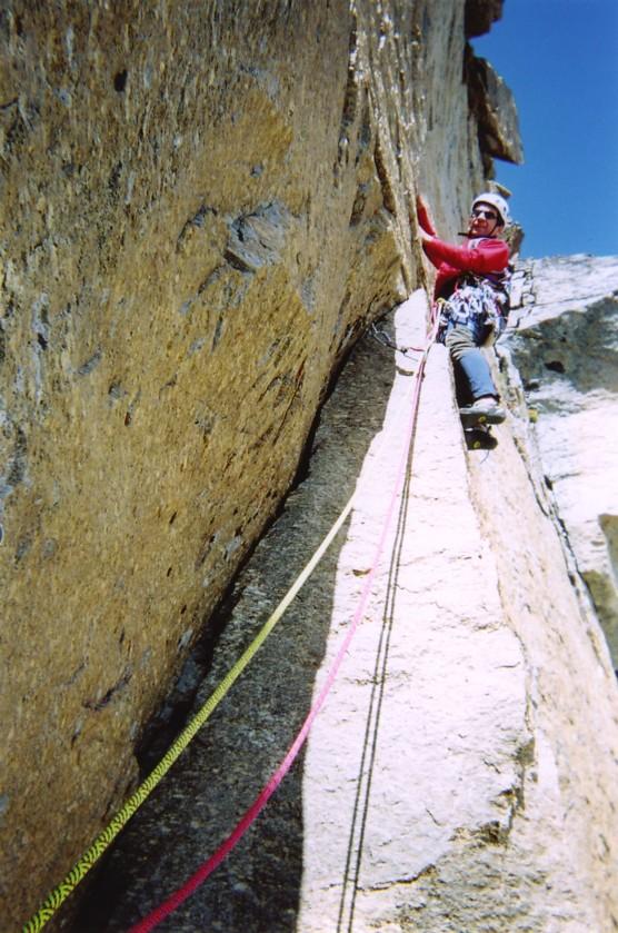 - L4: 6a/40m: tiro tutto sulla dx della cengia. verticale.