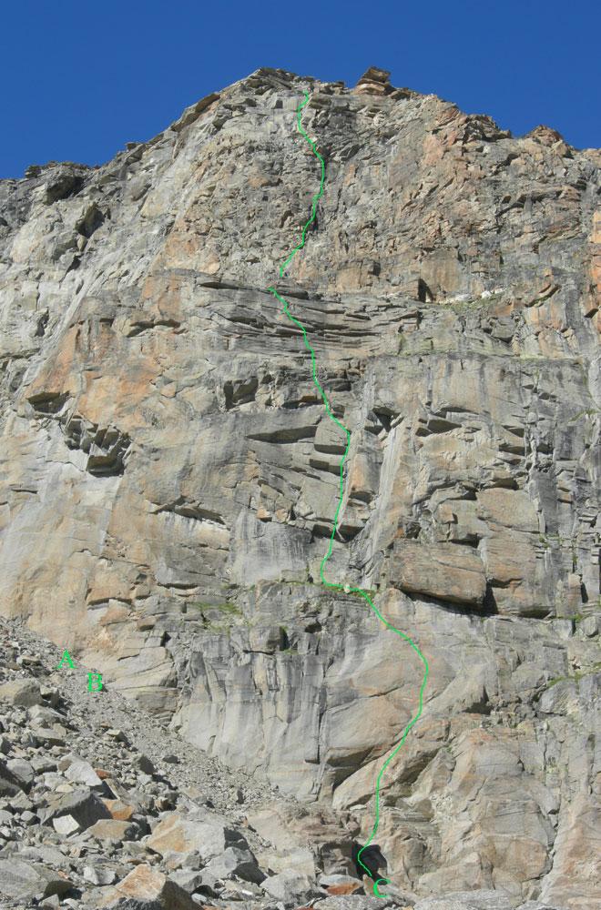 Dal Vittorio Emanuele usare il filo della morena a lato (sx or.) del laghetto lungo la traccia per il Colle del Gran Paradiso. Si sconsiglia la salita diretta alla parete per evitare le frane recenti