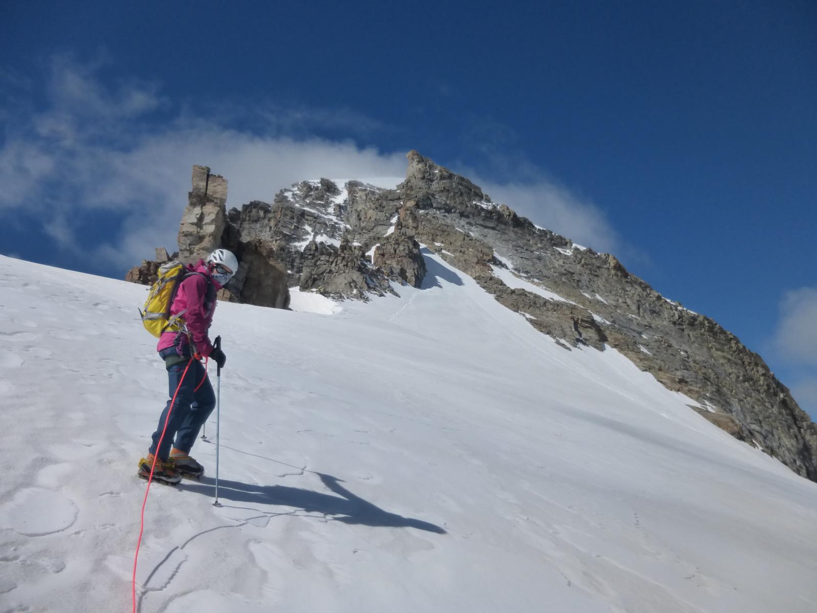 Partiti da Pont con temperature invernali…….ottimo rigelo notturno che ci ha permesso una veloce progressione sul ghiacciaio fino al colle dove inizia il tratto roccioso. Ottime condizioni su tutto l’itinerario con rocce pulite e assenza di ghiaccio sui tratti nevosi.