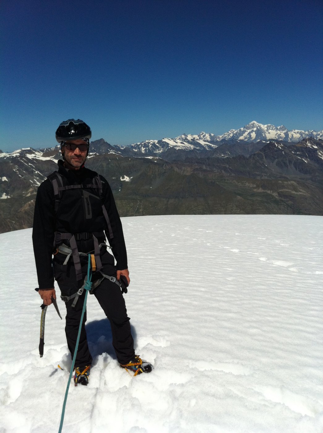 Scesi ad ovest su neve altrettanto sfondosa e alcuni sfasciumi. Discesa più lunga da questo lato, ma meno impegnativa.