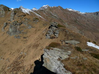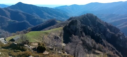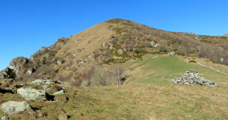 Il sentiero 129B è ben visibile, ci sono bolli recenti fin sopra le baite Taboino. Dal colle Toino alla vetta solo qualche rado bollo b/r e ometti a sufficenza sull’esile traccia sale alla cima. Dalla vetta panorama spettacolare.