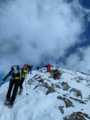 Portage 20 minuti in salita, ridotto a 10 in discesa stando sulla destra scendendo. Gita effettuata sorprendentemente nella finestra di bel tempo tra le 8.30 e le 14. Salita sotto sole caldo. Neve caduta nella notte. Ultimo ripido pendio neve farinosa, non ha richiesto coltelli. Abbiano invece messo i ramponi per la cima.