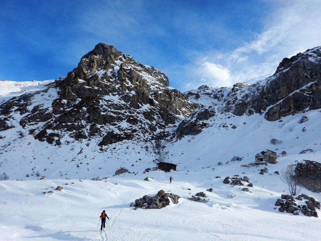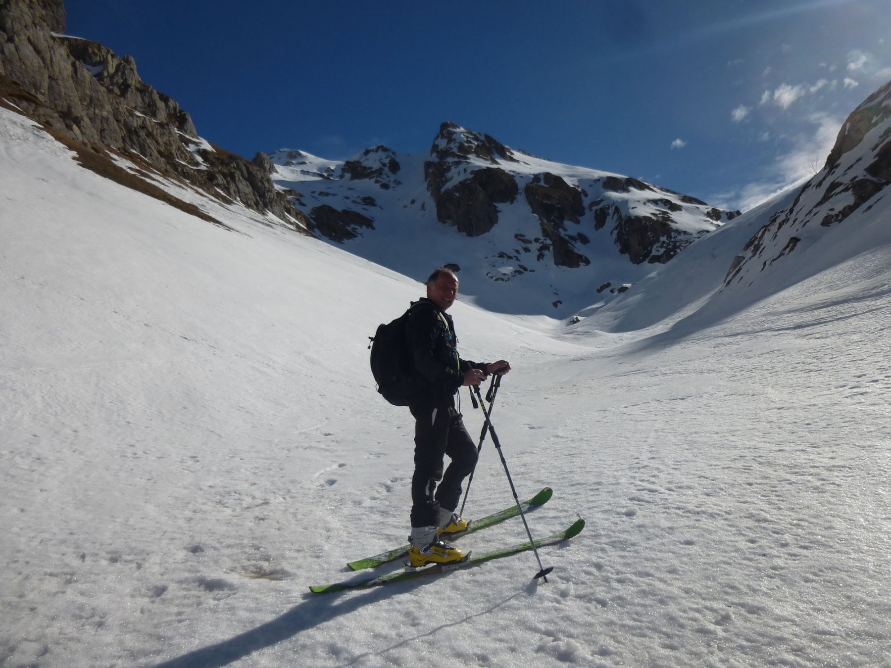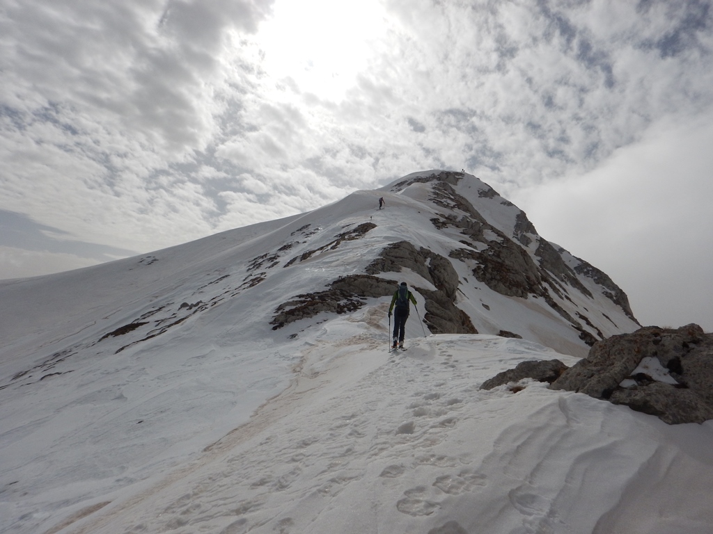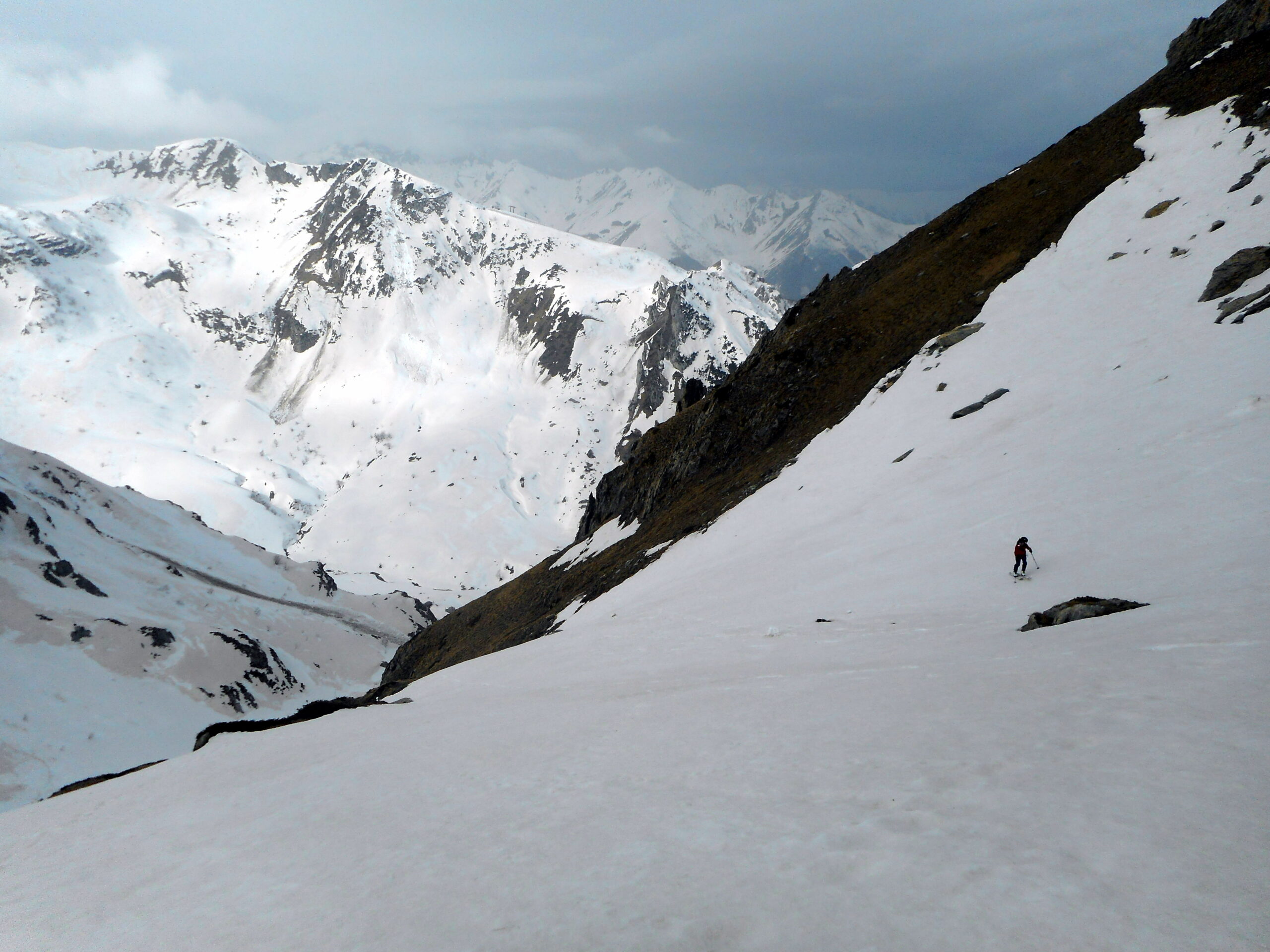Si sale un centinaio di metri e si perviene a un pianoro dal quale si vede il canale che permette di accedere a un secondo pianoro dal quale si accede al pendio finale.