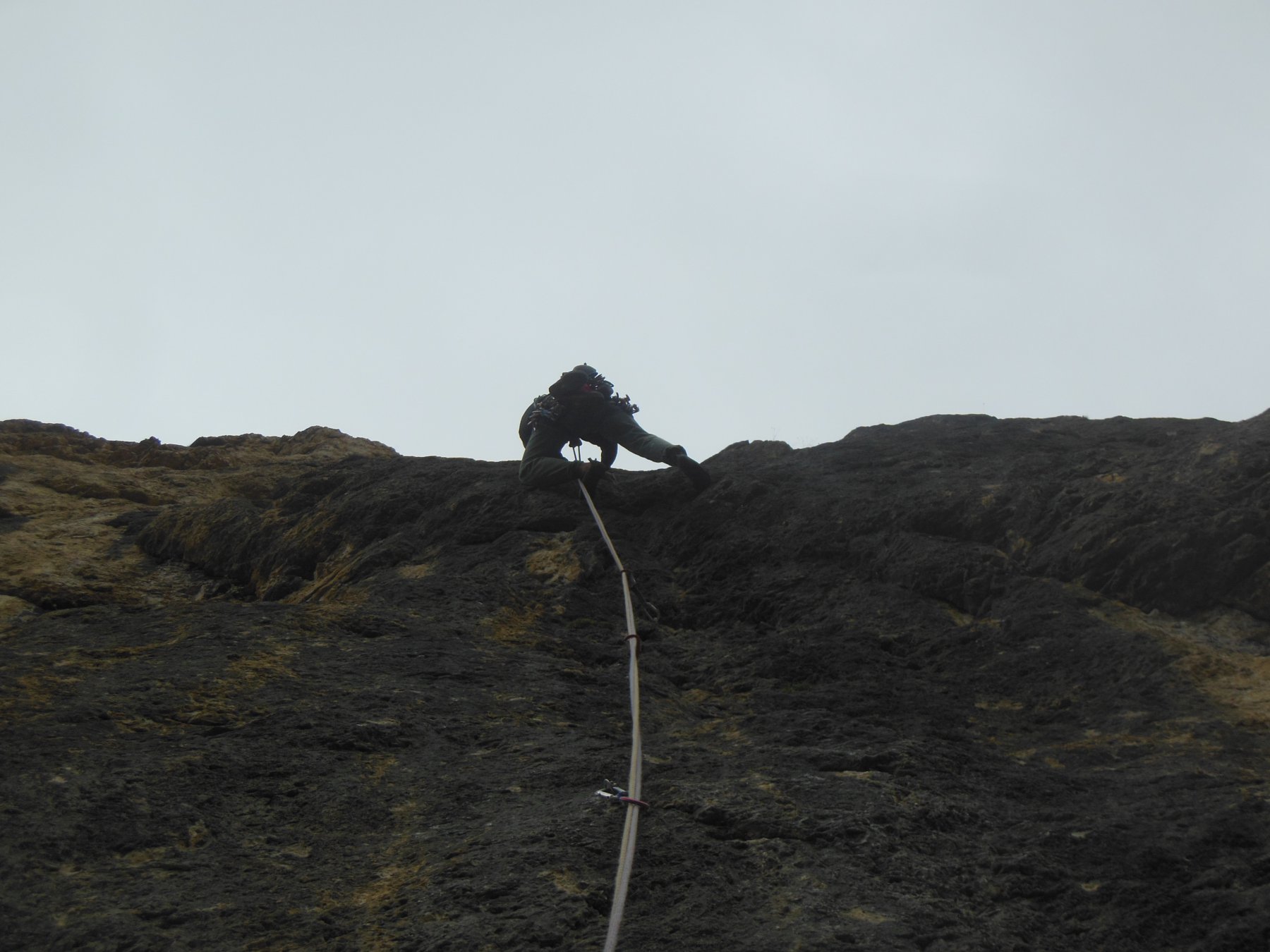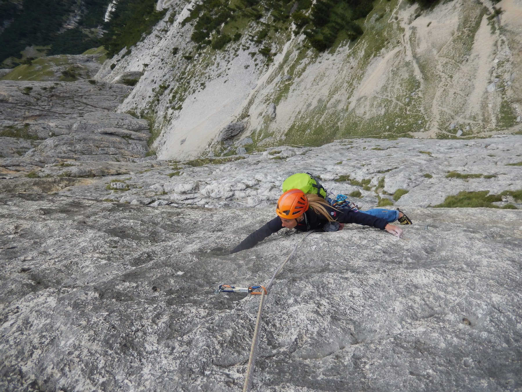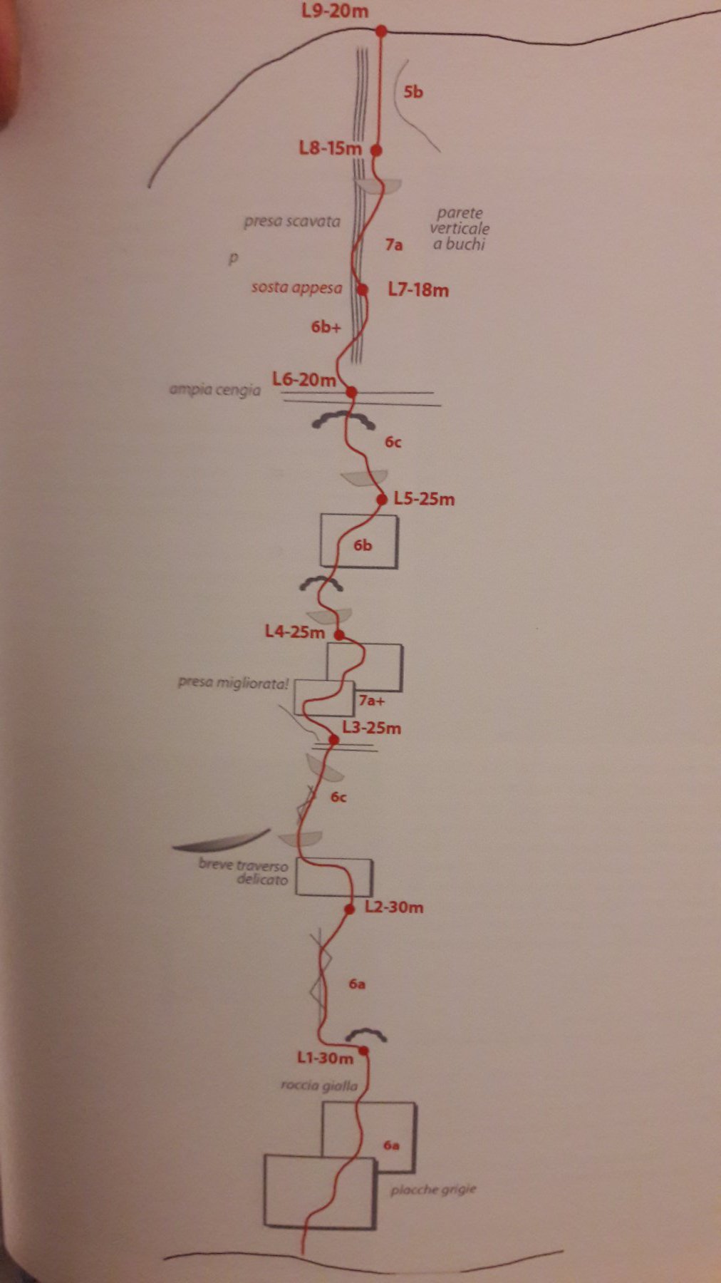 Via molto sostenuta per le difficoltà continue e per la chiodatura severa