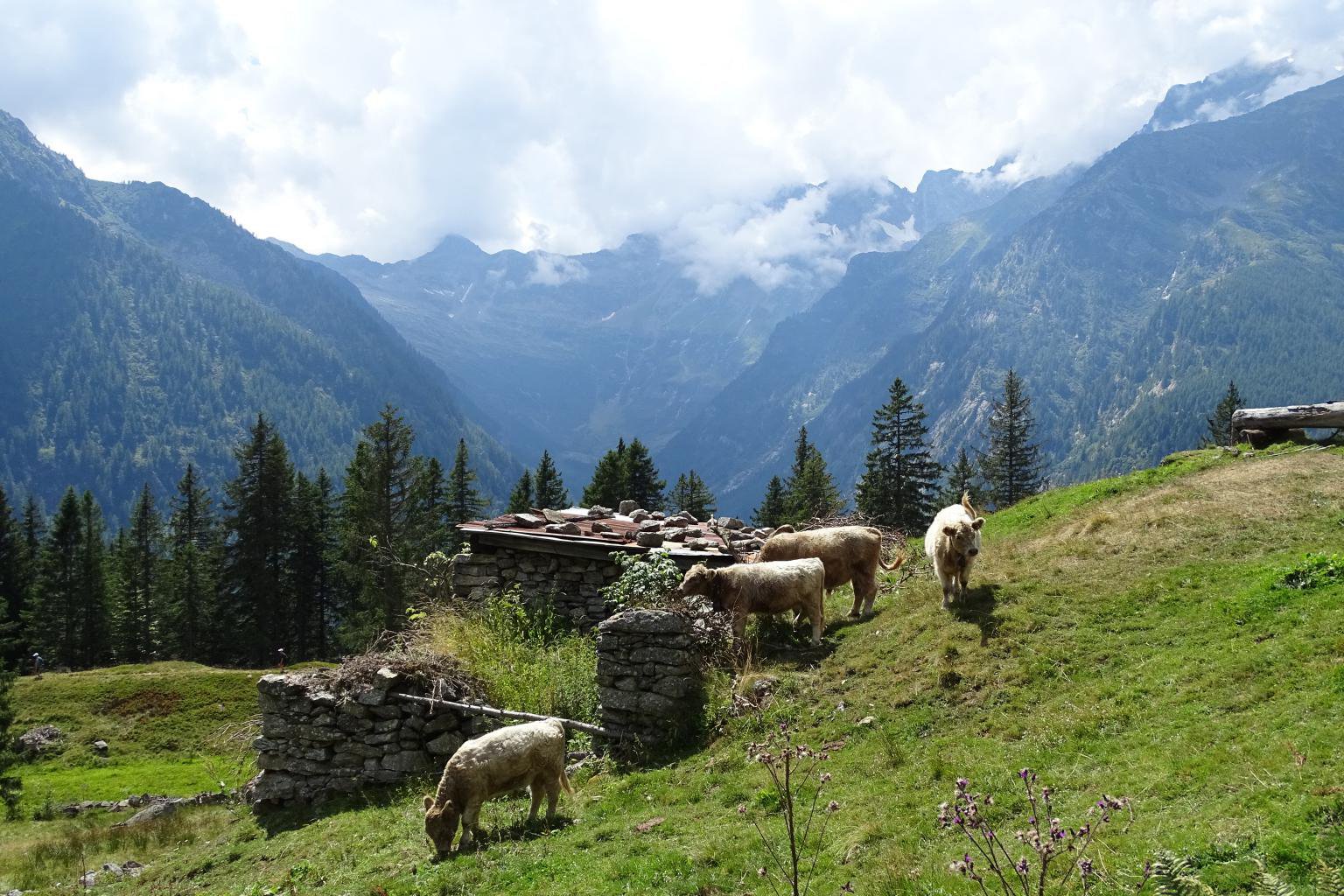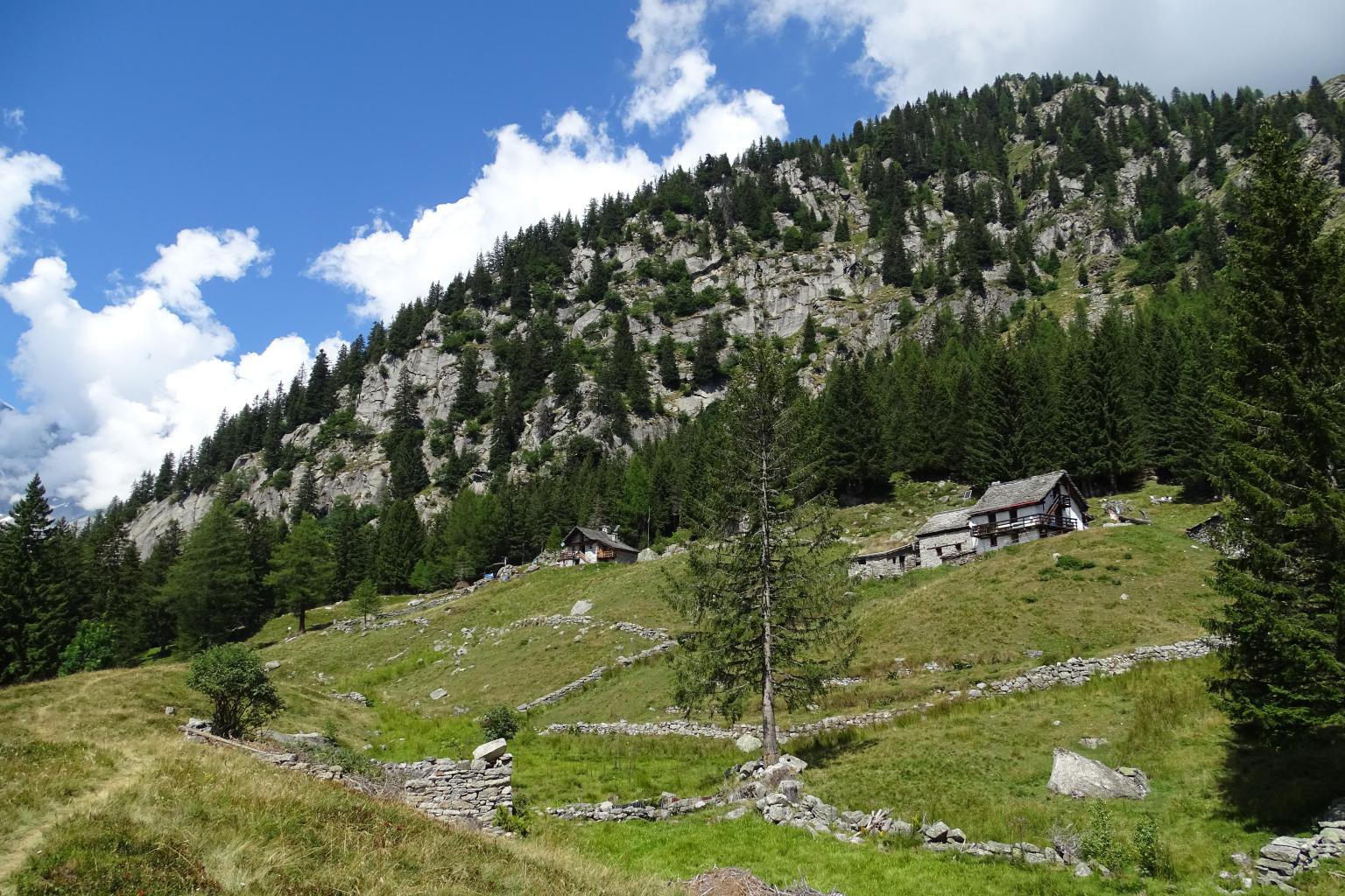 Dalla frazione di Borca, a fianco della casa Museo Walser, parte un viottolo sassoso in salita che attraversa le case e passa accanto ad un masso che riporta una scritta indicante il sentiero. Si sale per due tornanti e, costeggiata una parete rocciosa, si superano i cavi della teleferica continuando a salire a zig-zag. Si prosegue tra i cespugli di noccioli su sentiero scalinato e fra i ginepri si superano nuovamente i cavi della teleferica. A questo punto ci si inoltra tra i pini e da qui partono varie diramazioni sulla destra; restare sul sentiero che punta a sinistra e contrassegnato da triangoli rossi. Più avanti ci si trova di fronte ad una diramazione evidente a tre, tenere la strada centrale. A questo punto tenersi sulla destra, superare dei tornantini facendo attenzione alla pista che in questo punto è poco delimitata. Si giunge così all’arrivo della teleferica. Si prosegue entrando in un vasto bosco di conifere dove si intersecano vari sentieri, tenere sempre quello che porta alla sommità del pendio. Si sbuca in seguito in una radura che è l’Alpe Cicerwald. Sulla destra si incontra la cappelletta dedicata alla Madonna, mentre sulla sinistra ci sono le baite.