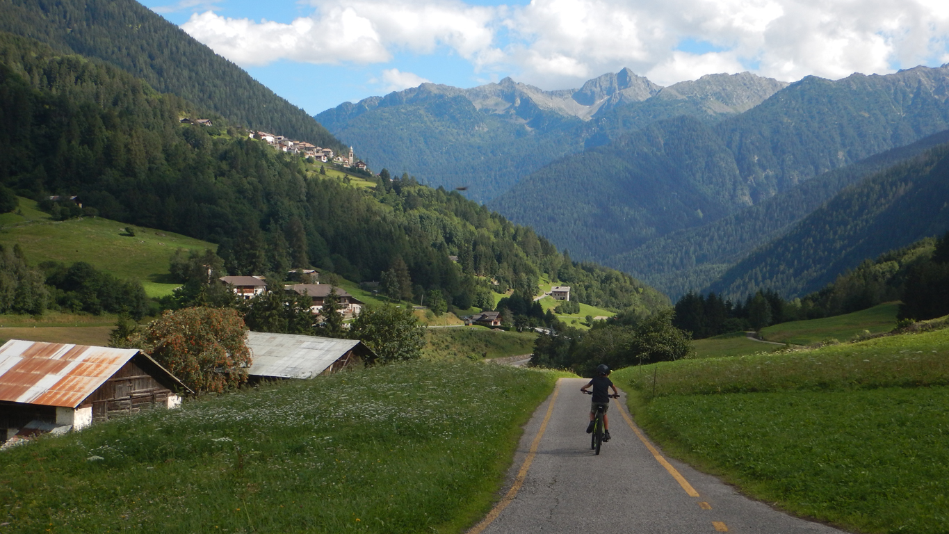 Da Ossana a Mezzana: il percorso si alterna a tratti pianeggianti e lievi discese, passando tra i borghi di Ossana e Pellizzano. Suggestivo il passaggio sotto Castel San Michele.