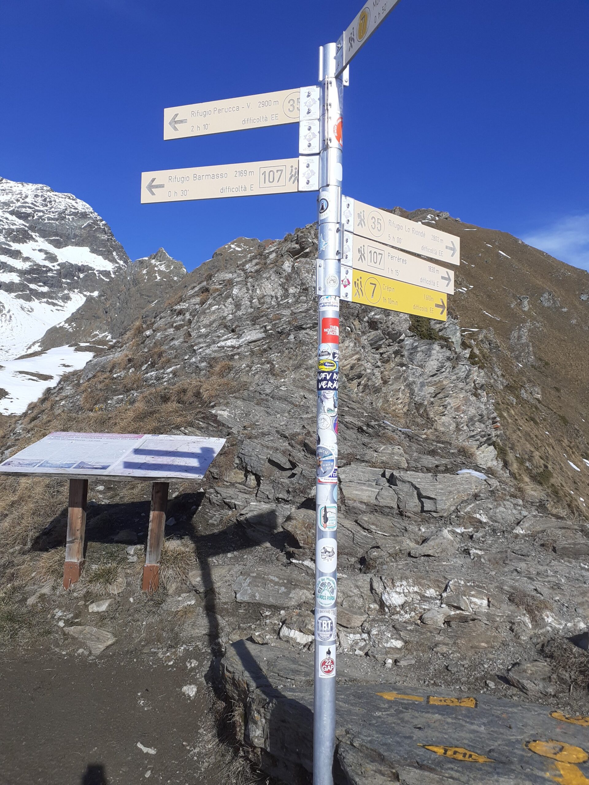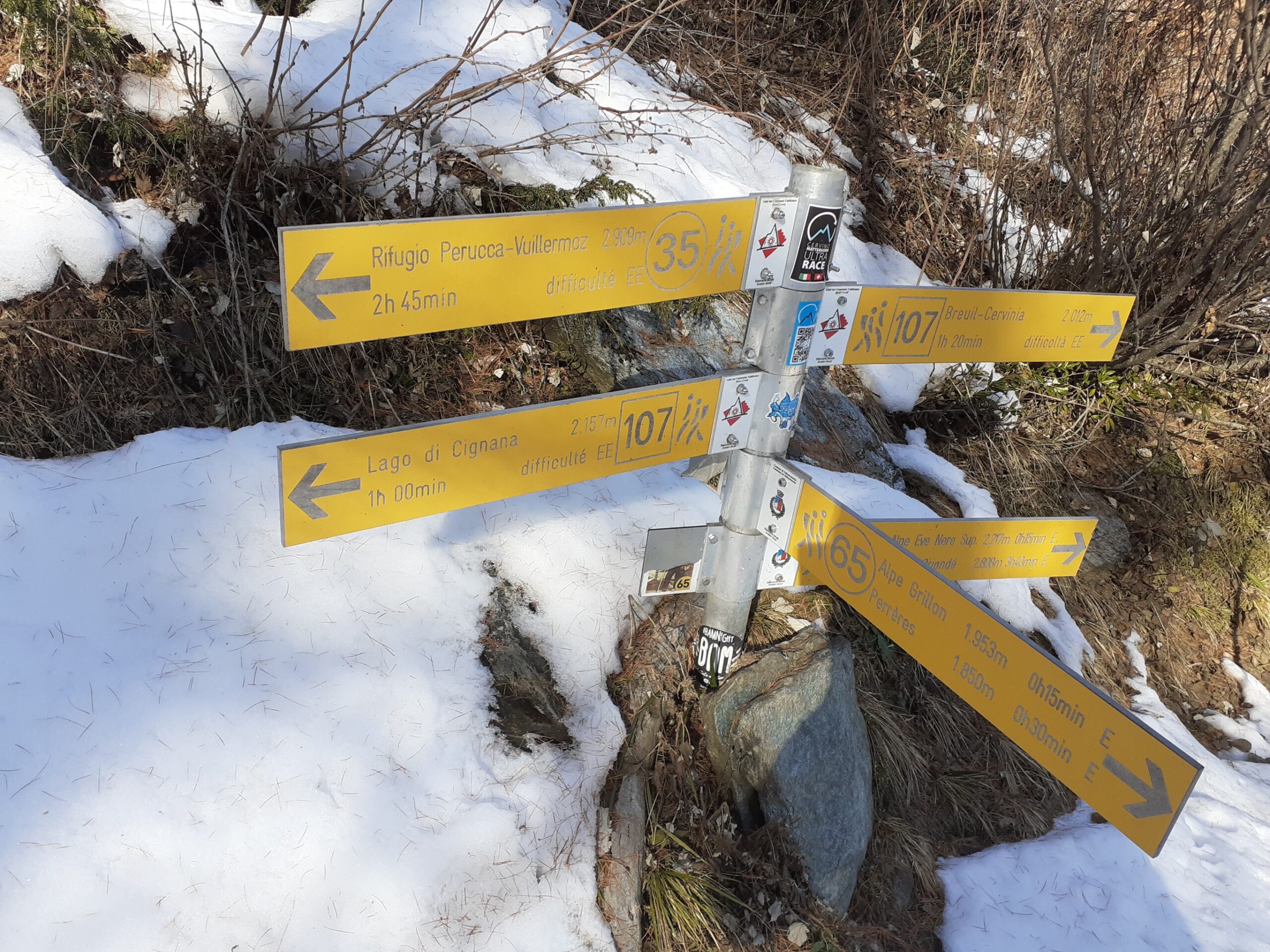 Abbiamo trovato neve alla palina con l’indicazione per Breuil-Cervinia; poco più avanti abbiamo messo I ramponcini; abbiamo superato un paio di slavine senza particolari problemi arrivando così alla Finestra.