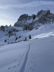 Arrivati nel vallone sottostante la Roda ed i Mugoni, si piega verso nord e si sale fino alla forcella Cigolade.