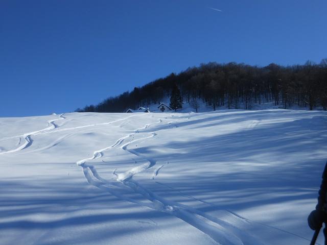 buon innevamento anche nella parte bassa, bella polvere parte alta, vento pressochè assente, qualche raffica sulla cresta dalla Cima alla Testa del Mater.