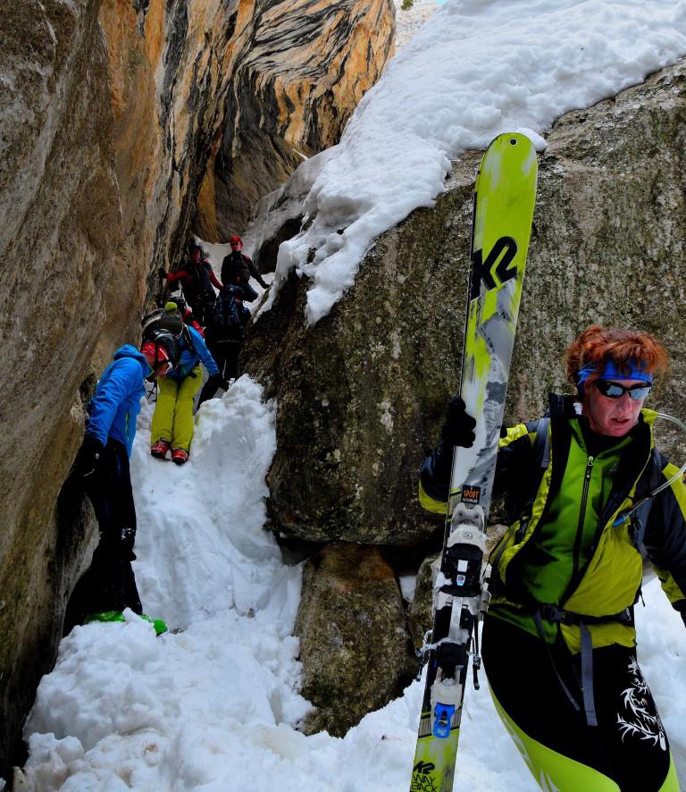 Canyon di Cimbar sceso in sci (salvo alcuni passaggi a piedi) fino al limite dellòa neve a 1900 m circa.
