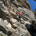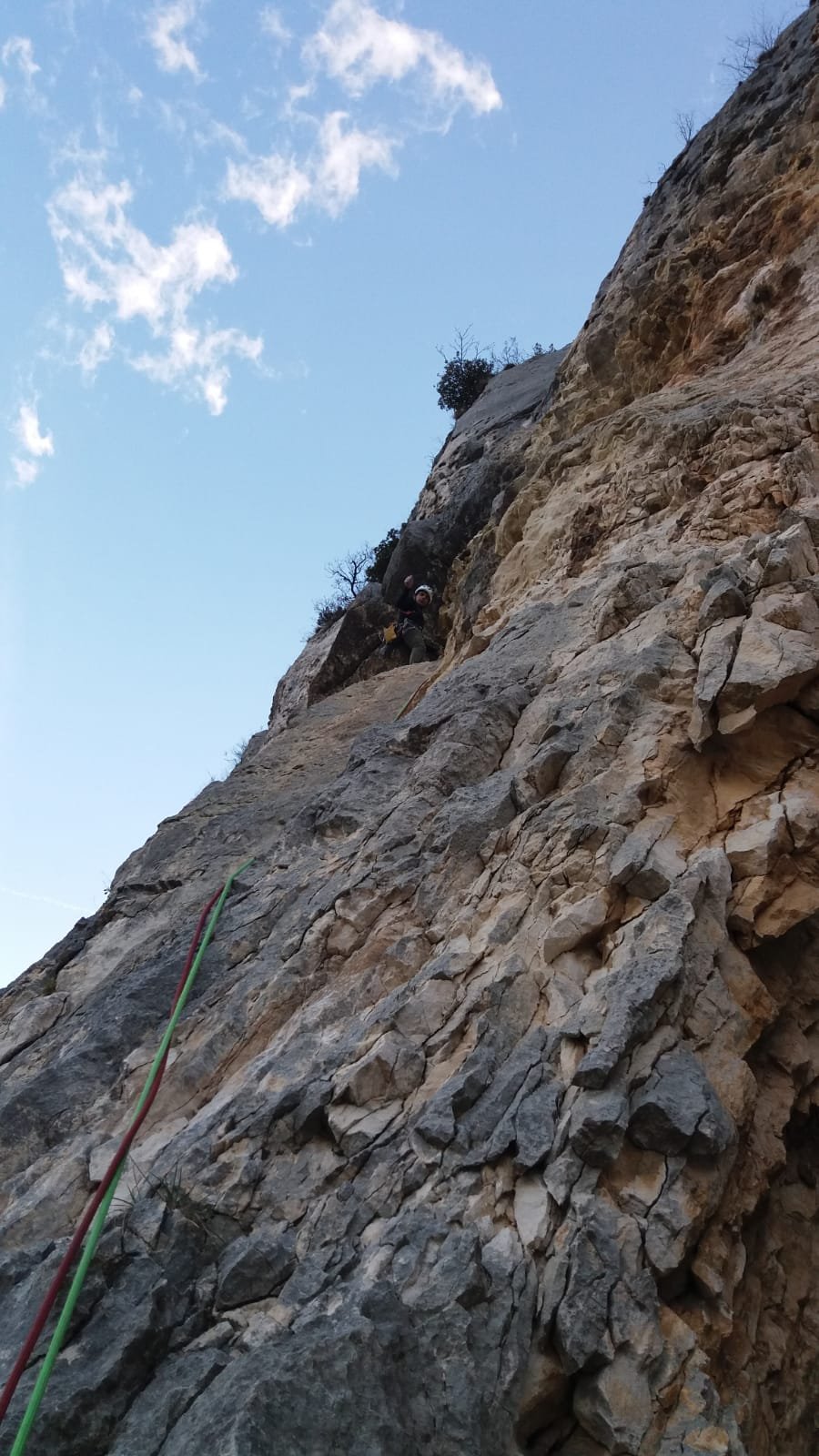 2 – dritti a superare un tetto 7a e successiva parete strapiombante a canne 6b;