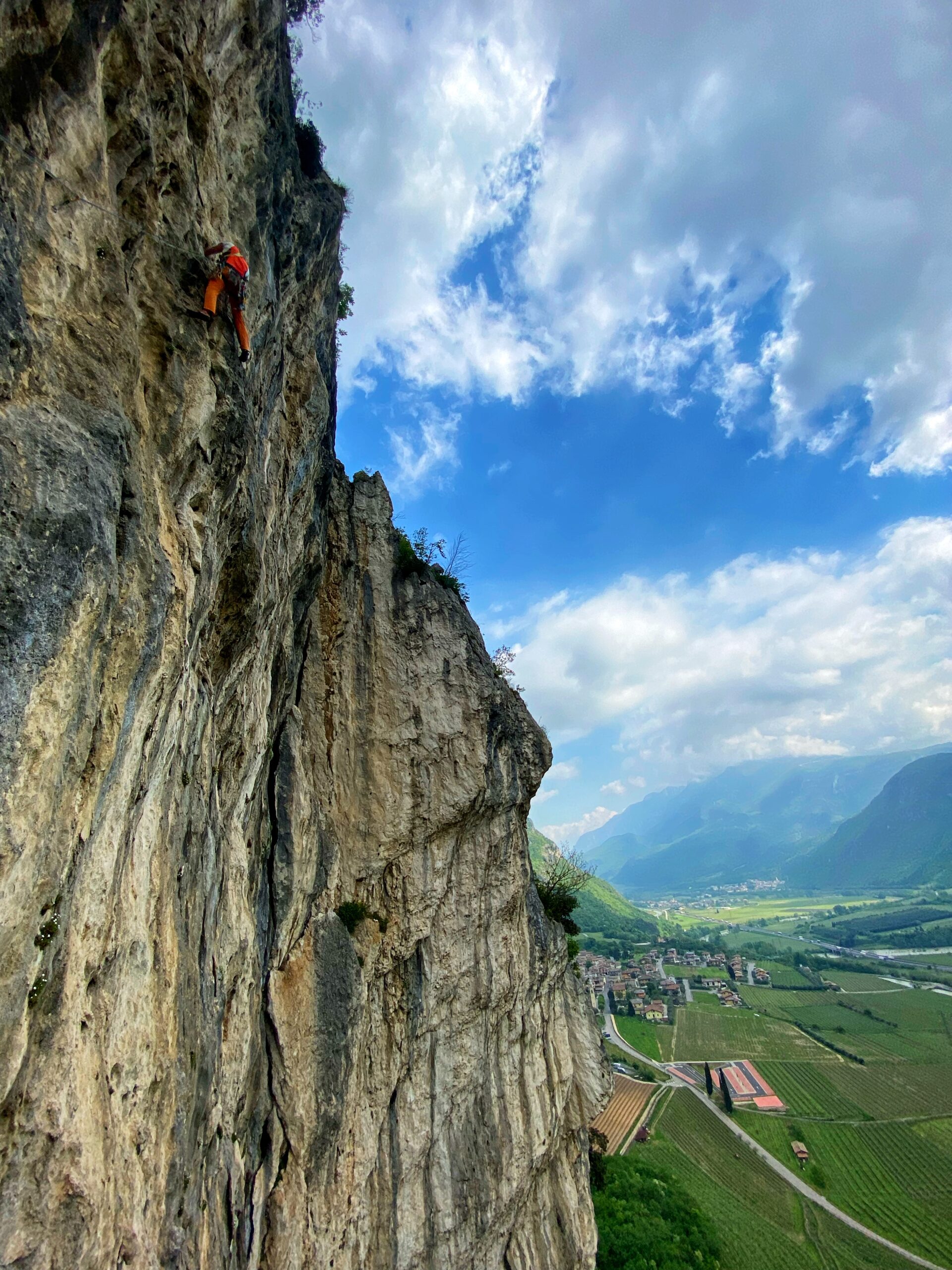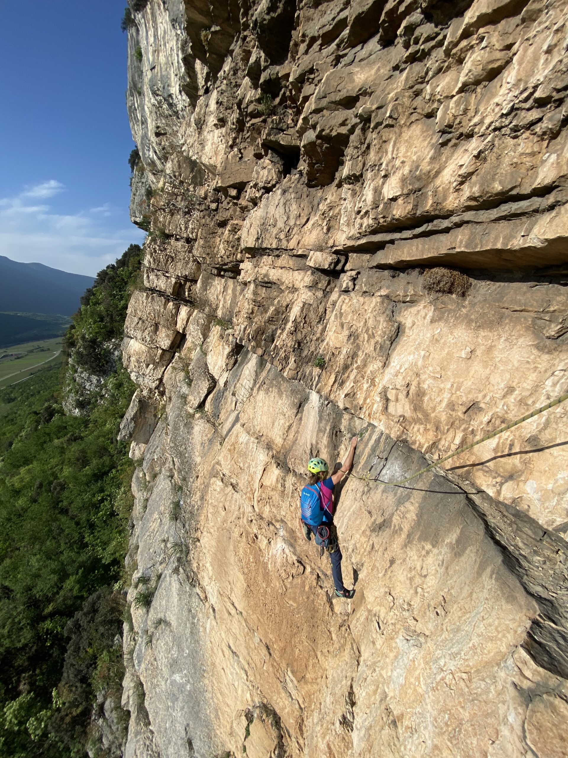 Grandioso itinerario (pure fotogenico) su roccia sempre eccellente! Esposizione garantita! Arrampicata sempre di soddisfazione. Tiro chiave un capolavoro .