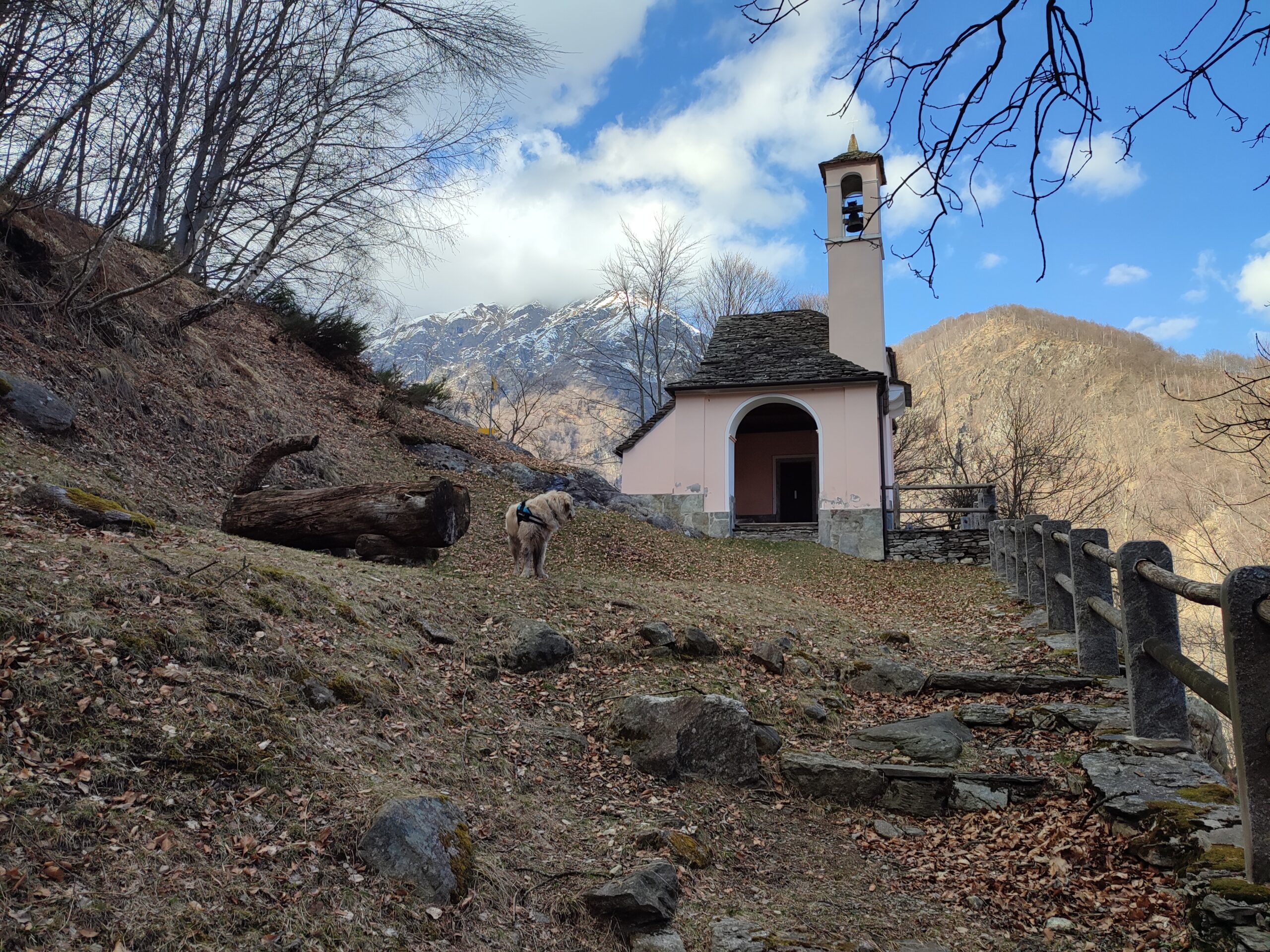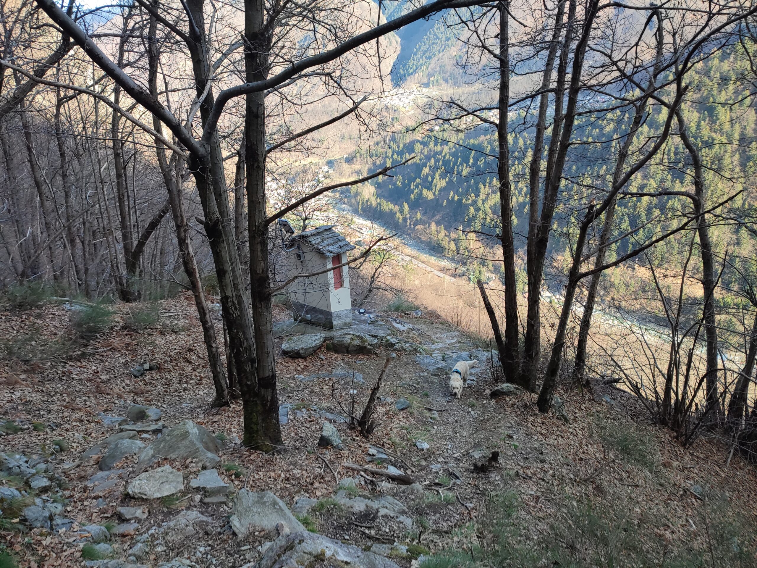 Dal parcheggio si risale brevemente la statale in direzione di Macugnaga fino a trovare i cartelli che indicano la mulattiera che porta a Barzona. Da questa frazione si prosegue nel bosco fino all”Alpe Pavù e poi all’Oratorio della Madonna del Sassello dove si va a sx per raggiungere l’Alpe Cresta. Si attraversa l’alpeggio per poi piegare a sx (cartello in legno) e dirigersi verso il grosso nucleo dell’Alpe Cingora, dove una baita è stata trasformata in un bivacco. L’Alpe Cingora è soprannominata “il balcone della valle Anzasca” per l’eccellente panorama che può offrire. Per la discesa si prosegue dalla parte opposta a quella di arriva e su ripido sentiero inizialmente anche un po’ esposto si arriva ai ruderi dell’Alpe Cà Nova. Si continua su fondo composto prevalentemente da gradoni fino alla Chiesa della Madonna del Ronco e successivamente alla frazione di Pianezza. Percorrendo i viottoli tra le case si raggiunge San Carlo e da qui si torna a Pontegrande percorrendo un tratto della Strà Granda che si mantiene parallela alla statale. Tempo complessivo indicativo 3h 15′.