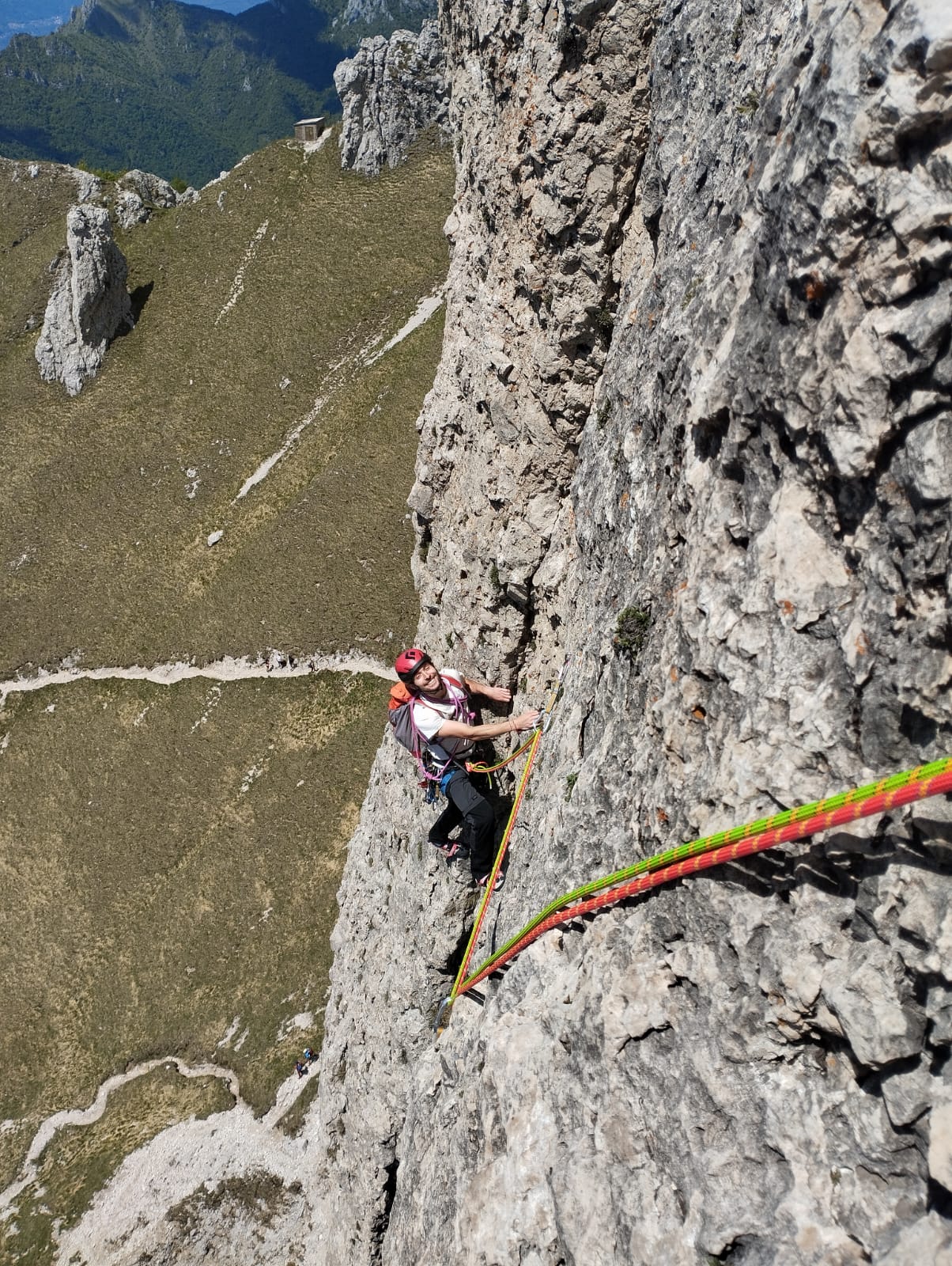 – Con mezze da 60 metri, possibilità di effettuare 3 calate verticali sulla via “Fantasma della libertà”