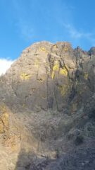 - L4 (6b+ o A1 e 6a+, 40m): Seguire la fessura che si trasforma in un camino. All’uscita del camino spostarsi a dx e sostare. Sosta 1 chiodo integrabile (quasi sicuramente con un buon friend 0.3 camalot).