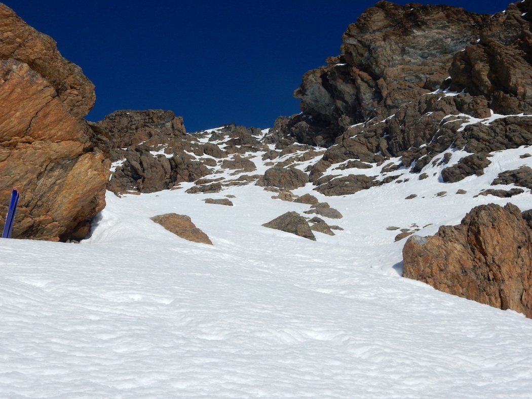 Raggiungere l’alpe d’Ovarda e da lì puntare alla parte. Ci sono più possibilità destra sinistra e centrale. Da sotto non sono evidenti, bisogna andarci sotto e soprattutto per il canale centrale entrarci dentro.