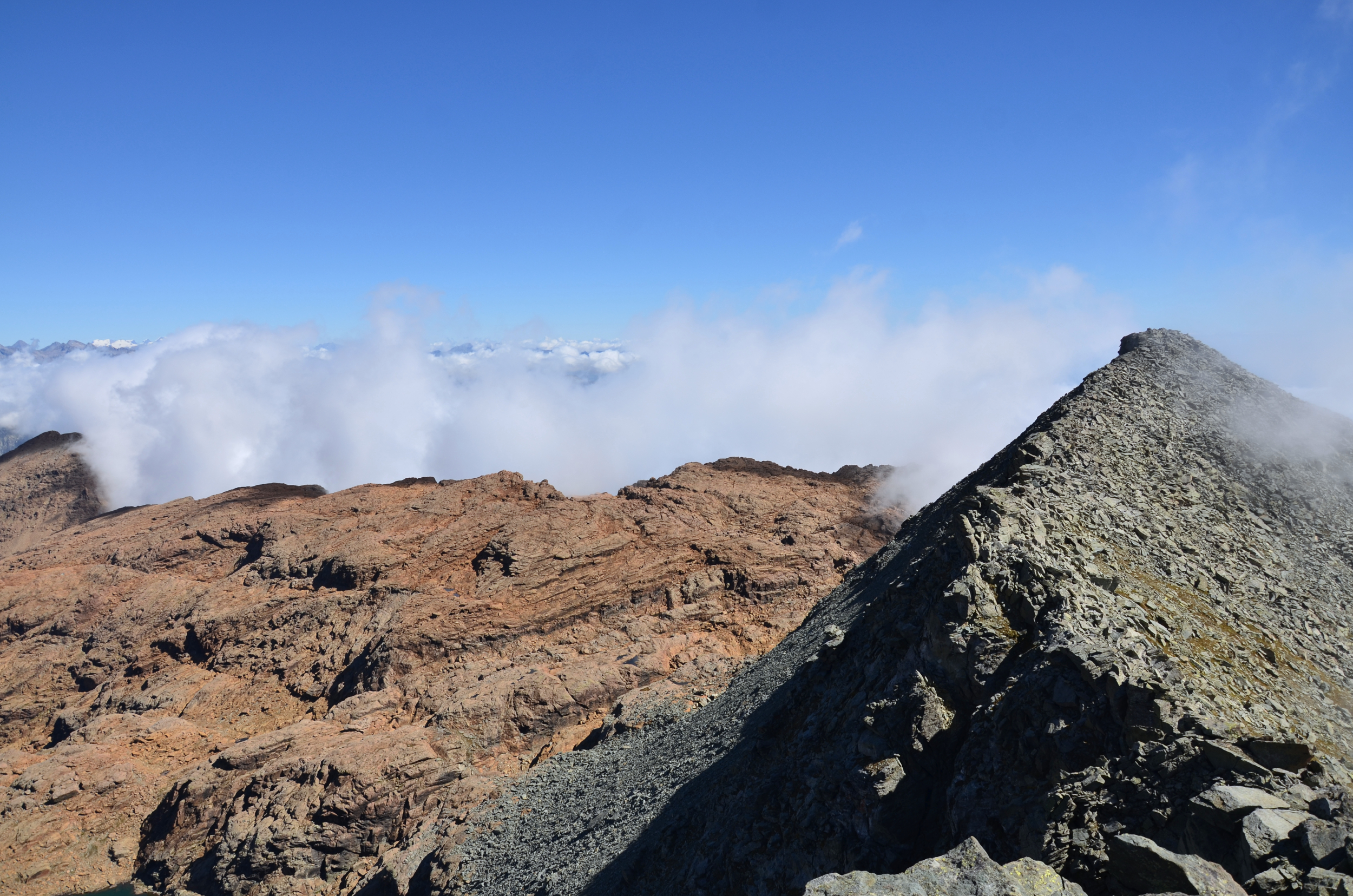 Lasciata l’auto si prosegue a piedi sulla sterrata sino ad oltrepassare l’Alpe Milone (1613m) ed un centinaio di metri lineari dopo questa si prende sulla dx un sentiero non troppo marcato che costeggia il torrente e permette di raccordarsi col sentiero principale (n°127) a circa 1850m di quota. Preso quest’ultimo lo si segue in direzione est passando per il caratteristico Pian del Gioco (1995m) e raggiungendo il lago Grande (2214m). Prima di lambire le sue sponde conviene evitare di scendere sino al lago e puntare a sx (direzione N-NO) fuori sentiero e raggiungere lo stesso alla volta dei Tre Laghetti; quindi lo si segue sino a tale meta (2391m). Da qui si abbandona definitivamente il sentiero e si svolta a sx procedendo con direzione O-NO: cercando il percorso migliore si sale traversando lungamente su pietraia grippante sino a toccare una specie di colletto sormontato da un grosso gendarme e si prosegue sempre in diagonale e con la stessa direzione sino al colle(2741m) presente tra il Ciorneva e la Cima la Rossa. Da questo colle parte la cresta NE del Ciorneva che si risale rapidamente tenendosi tendenzialmente sul versante esposto a SE. Con passi di arrampicata elementare si raggiunge la cima principale (2918m).