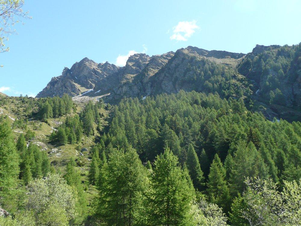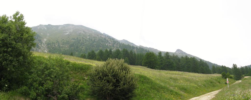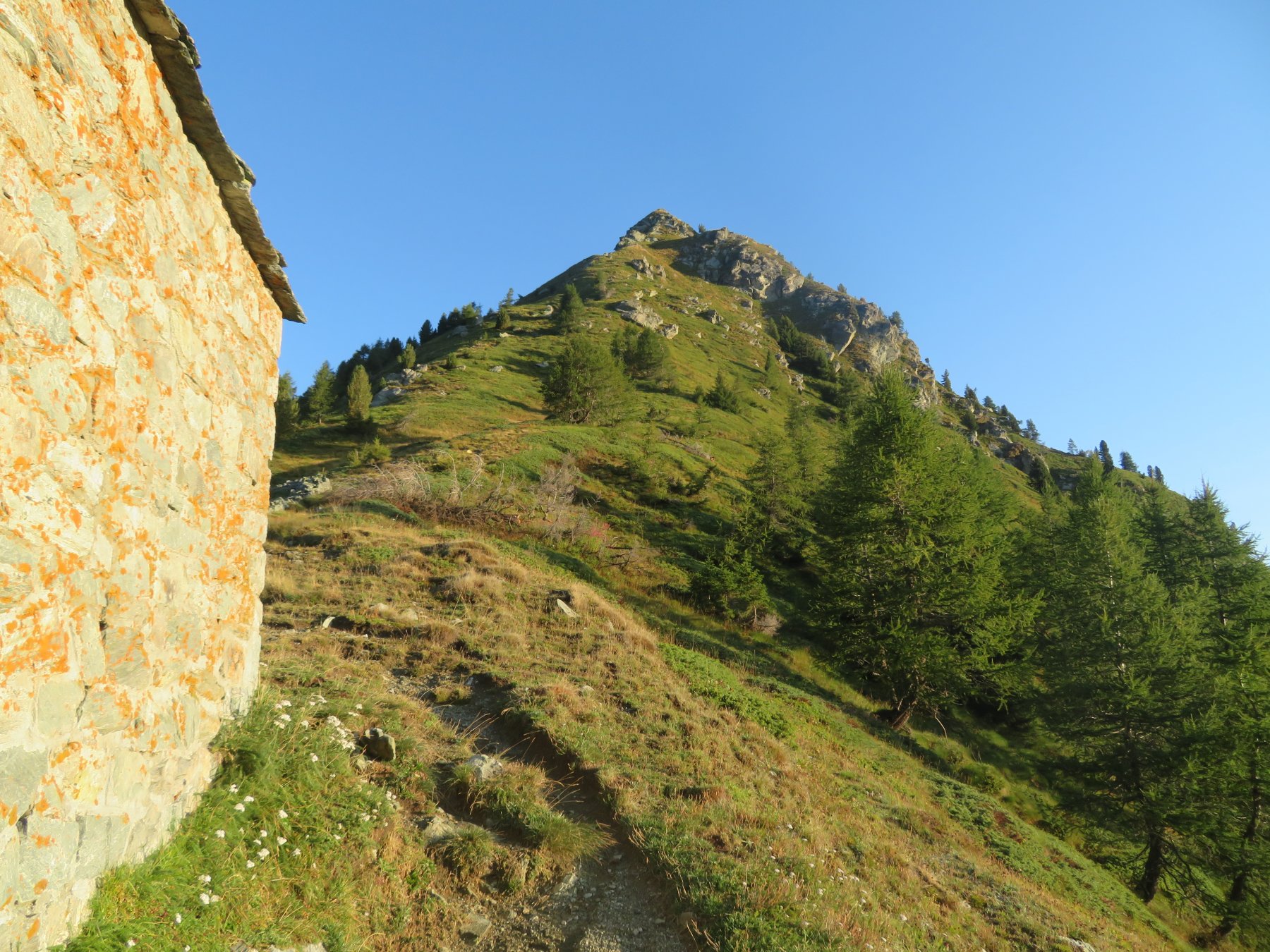 Dall’ A. Finestra si percorre il sentiero che s’innalza dietro il primo fabbricato e taglia in leggera salita verso il Colle della Ranzola 2170. Con il sentiero a lato della cappella-oratorio si rimonta la cresta prevalentemente erbosa con bassi cespugli di ginepro e qualche piccola conifera (ometti); un tratto diretto e un paio di brevi deviazioni a sinistra e si riprende a salire sul crinale che aumenta d’inclinazione.