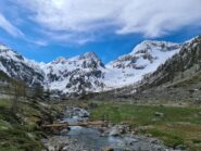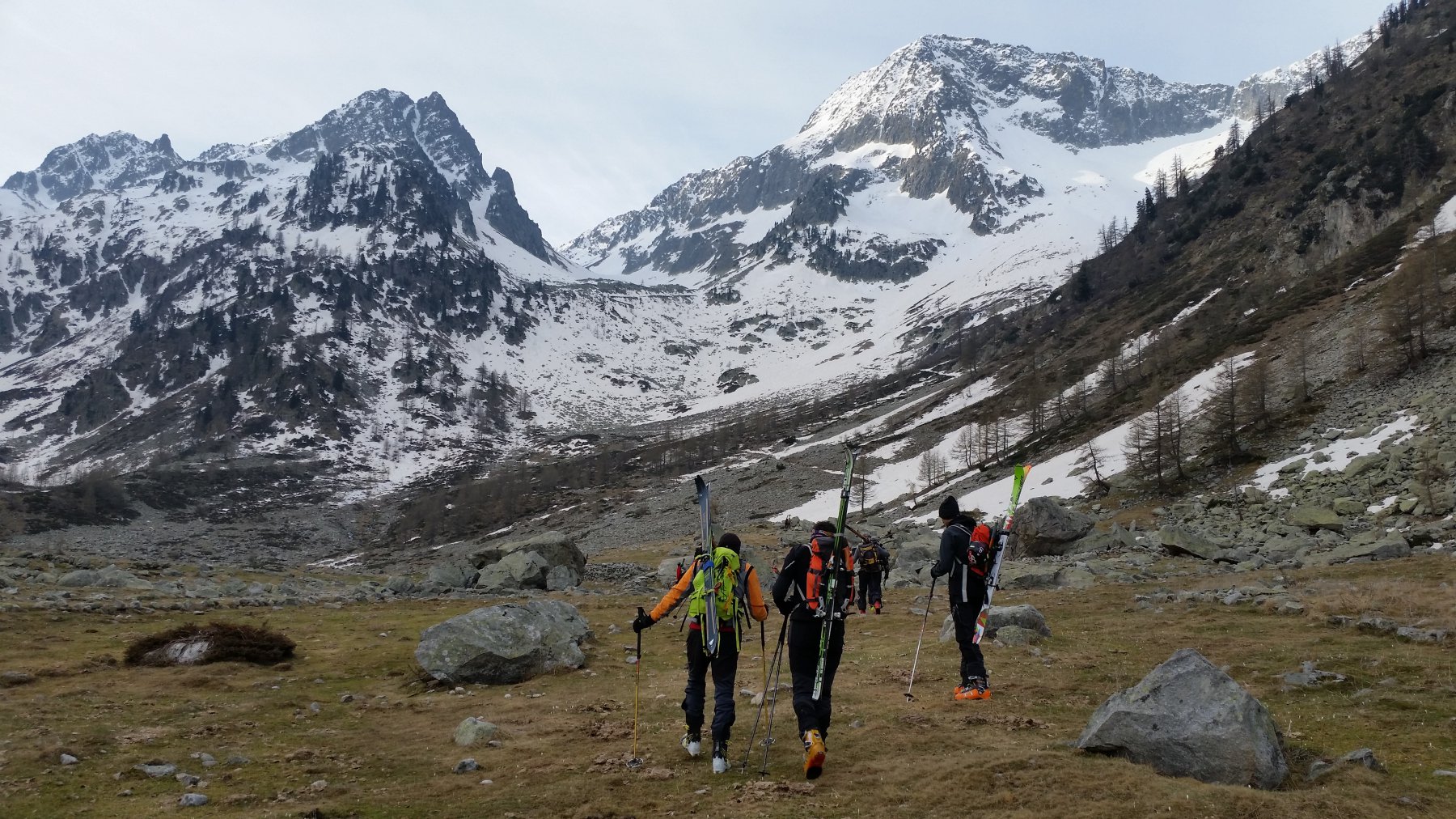 Giunti al termine del suddetto pendio, quando il vallone spiana e si apre, dirigersi verso l'evidente conoide del canale.