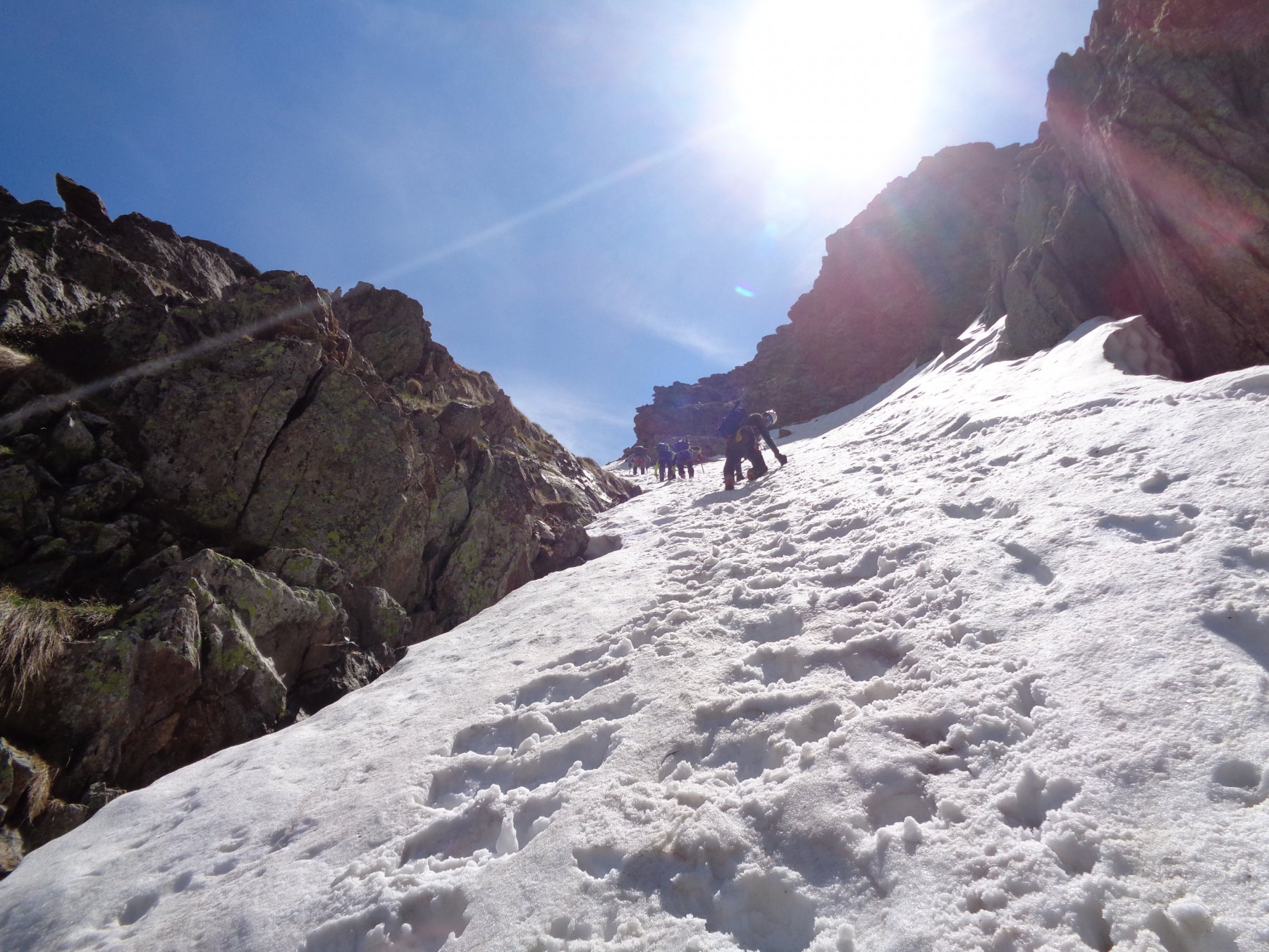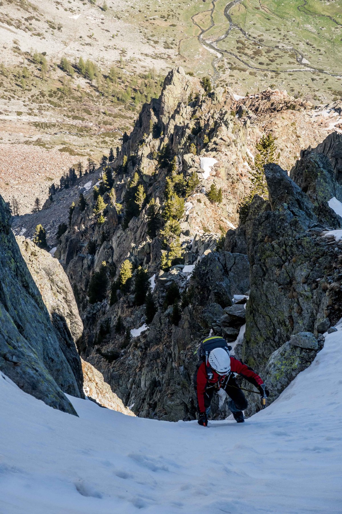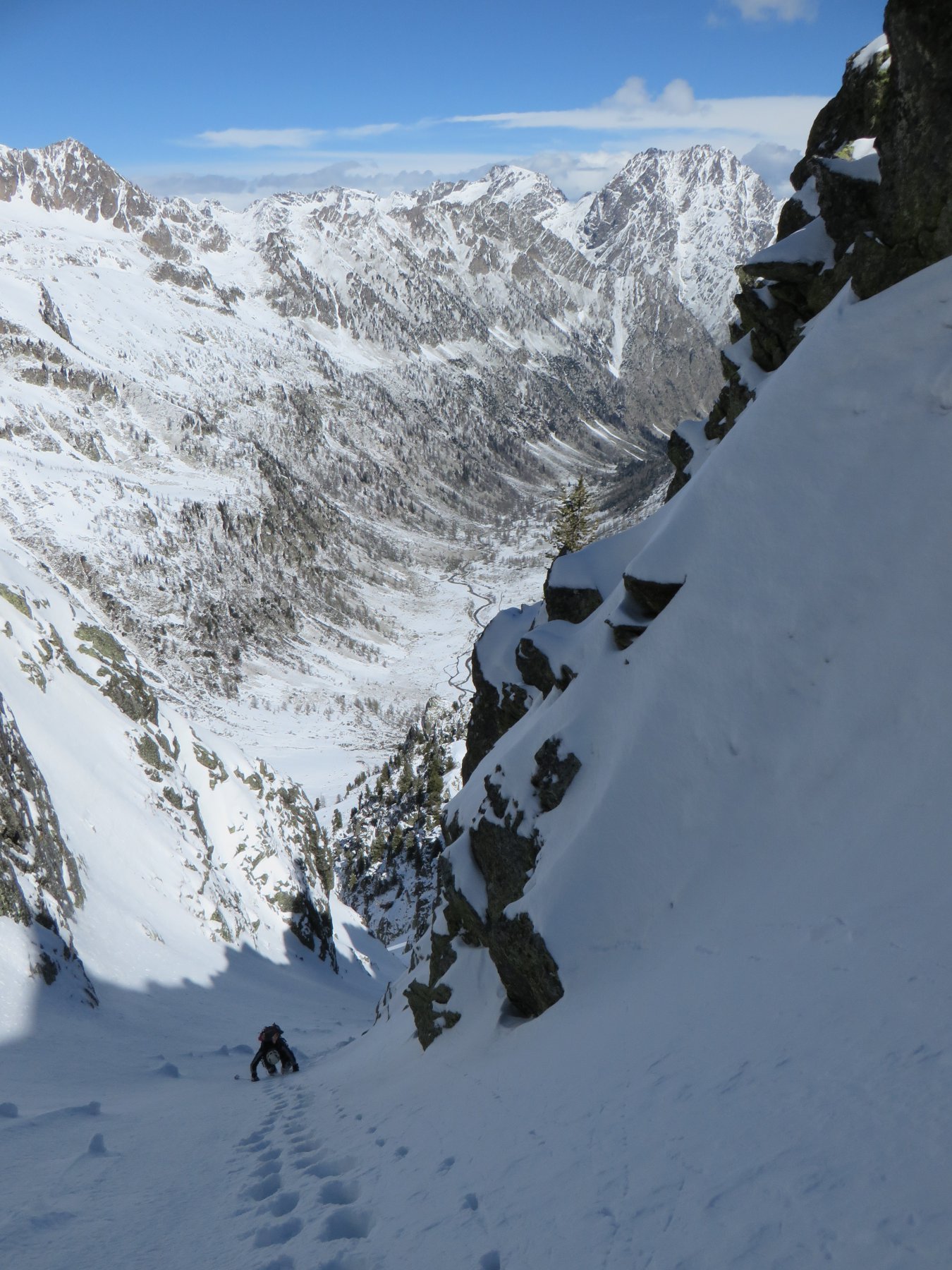 Risalirlo con pendenze mai superiori ai 40° anche nella parte mediana del canale.