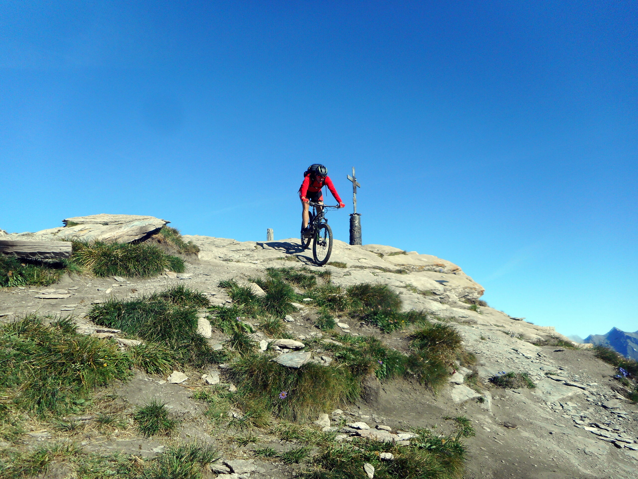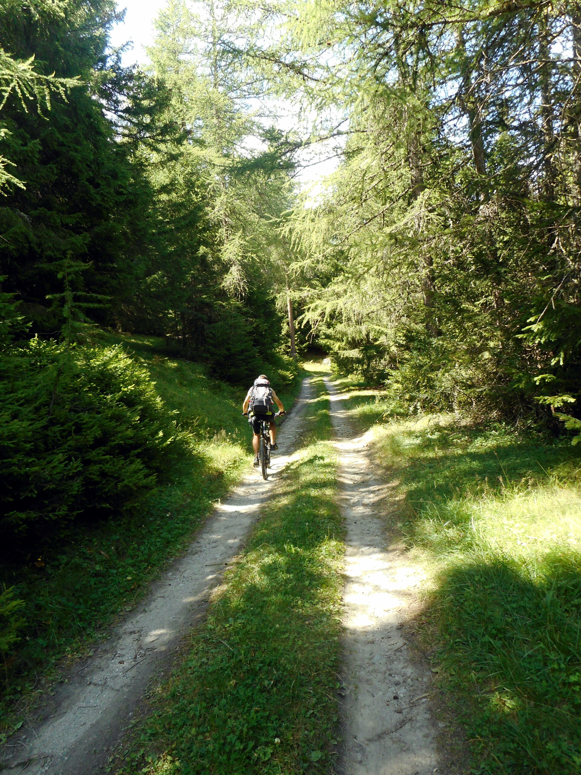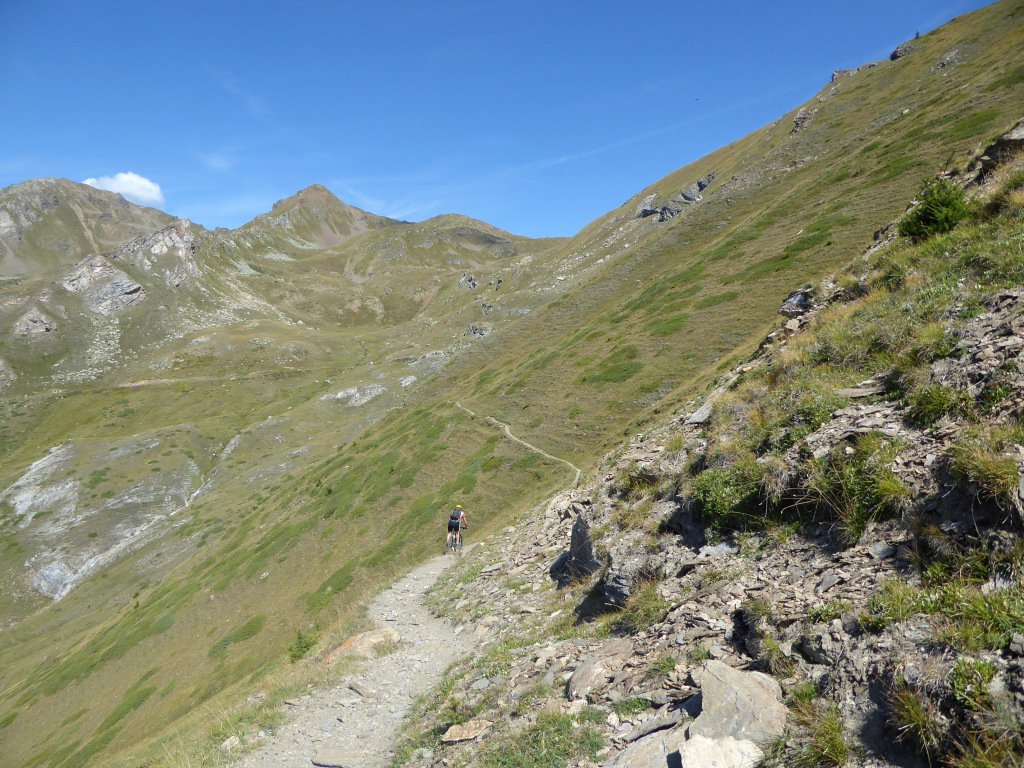 Da lì fino all’attacco della salita per il col Citrin e, per lo più spingendo, fino al colle per scendere nel lungo e bellissimo vallone di Vertosan fino a prendere a sinistra la deviazione per il col de Joux dove a sinistra del laghetto parte un divertente sentiero ciclabile (17) e poi (17a) a sinistra per Vetan Dessous.