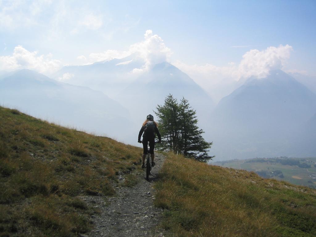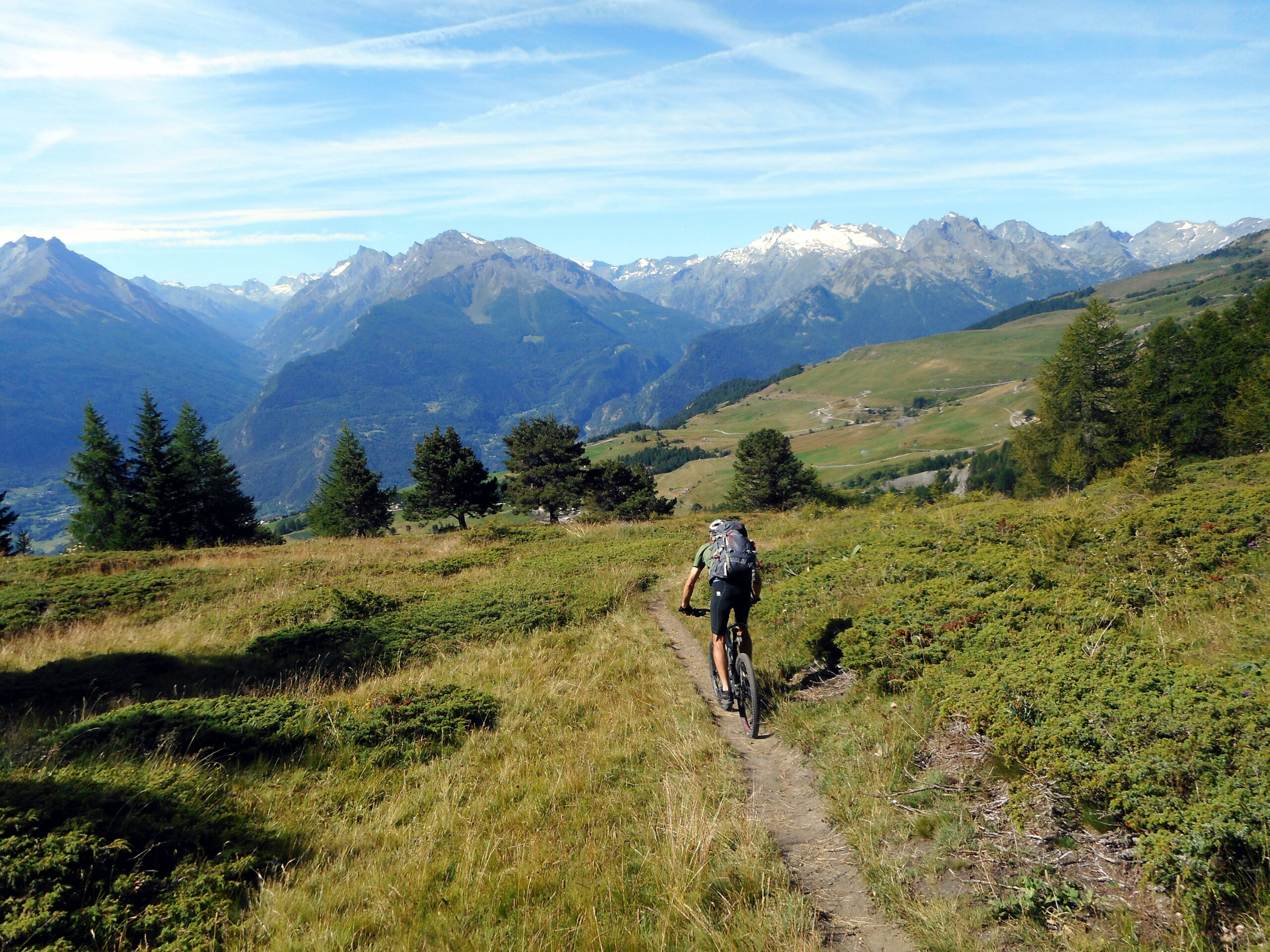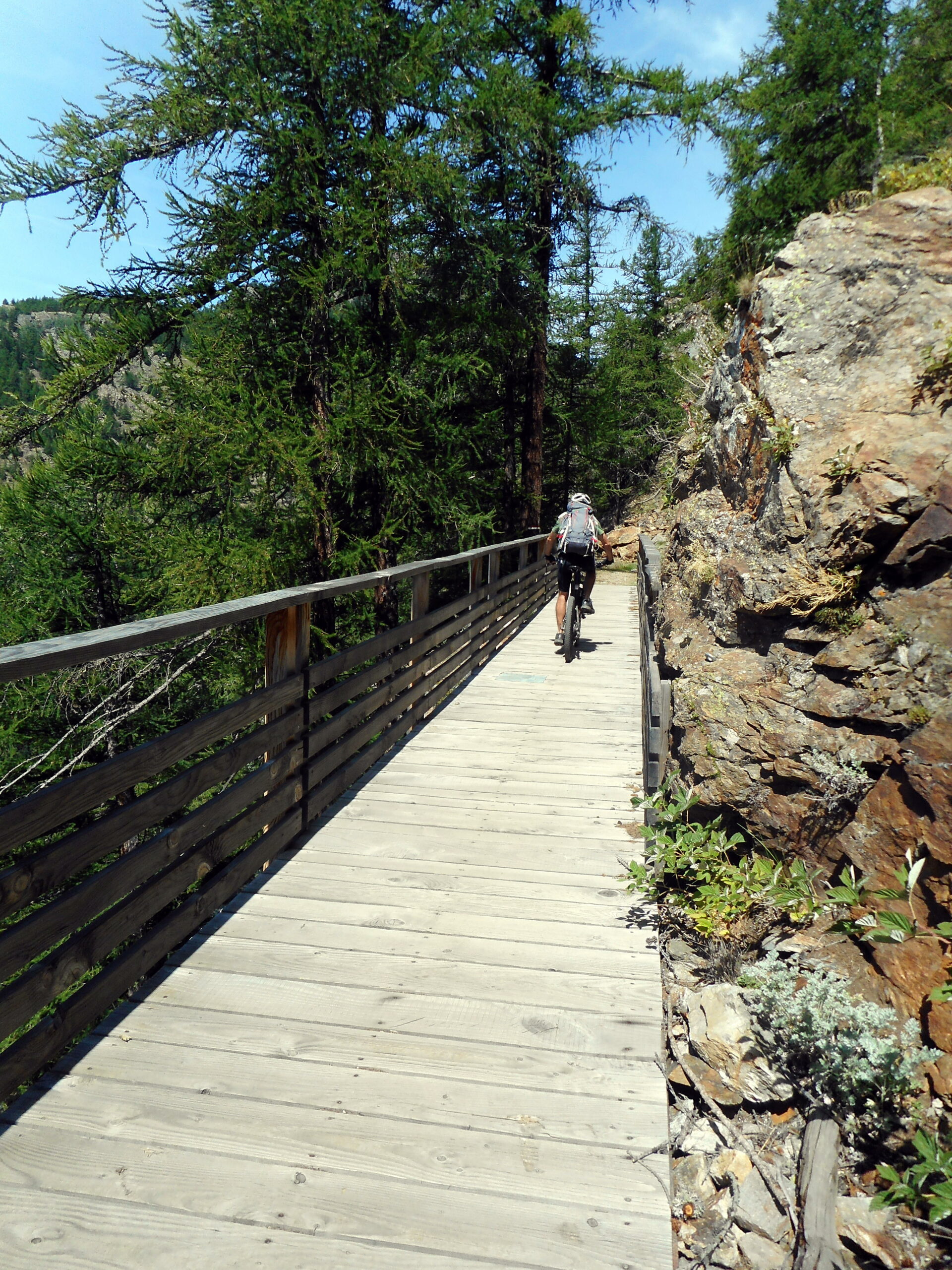 Da lì fino all’attacco della salita per il col Citrin e, per lo più spingendo, fino al colle per scendere nel lungo e bellissimo vallone di Vertosan fino a prendere a sinistra la deviazione per il col de Joux dove a sinistra del laghetto parte un divertente sentiero ciclabile (17) e poi (17a) a sinistra per Vetan Dessous.