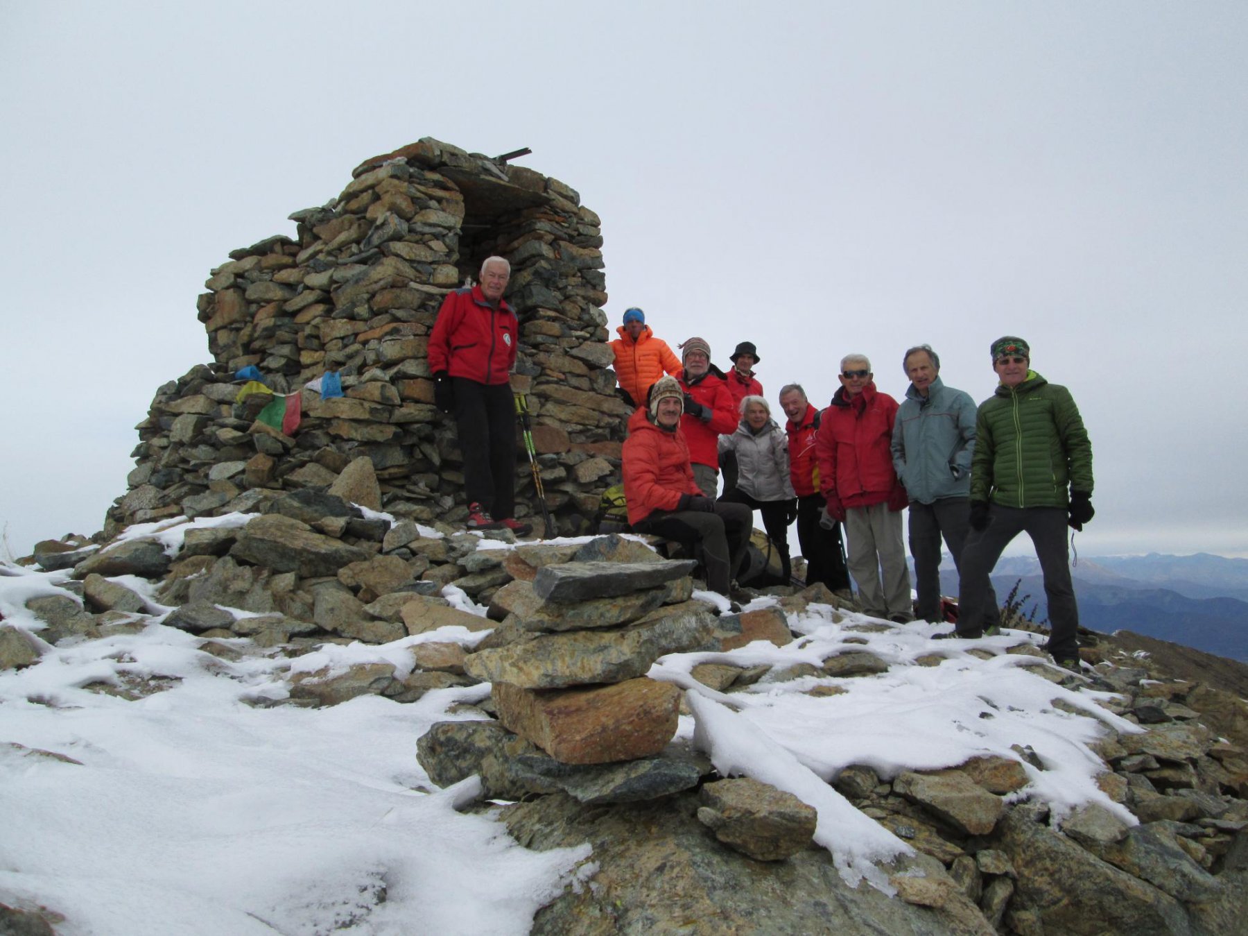 Oggi undici “evergreen” sono saliti alla Punta Imperatoria del Civrari. Giornata fredda, senza sole con presenza di neve da quota 1900 metri in su, che però non ha causato problemi. Bisognava solo fare attenzione nei brevi passaggi lungo tratti ghiacciati. Breve sosta in punta causa vento gelido e ritorno alla base