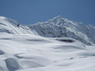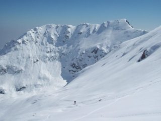 Percorso il bel valloncello alle pendici della punta Imperatoria, inondato dal fortissimo riverbero del sole sulla neve.