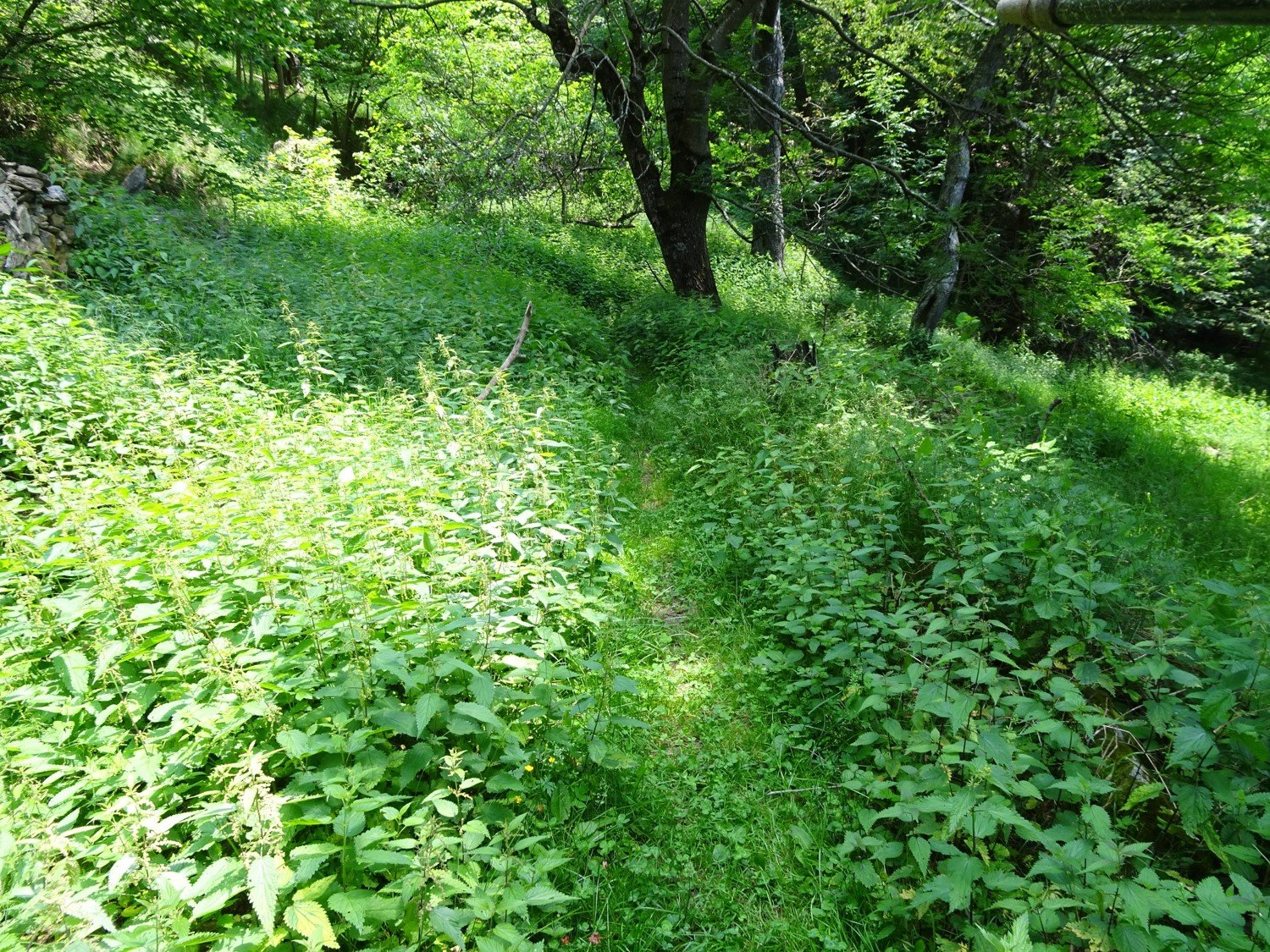 Si segue a dx la bella mulattiera che raggiunge Sala. Qui si incrocia il sentiero balcone che prosegue fino alla borgata Case Inferiori dove si attraversa la strada asfaltata, la si percorre per un breve tratto ed in prossimità di un piccolo lavatoio si imbocca a dx il sentiero che poi finisce nel successivo tornante della statale; di qui si prosegue per circa 200 mt fino ad arrivare a Celle.