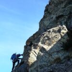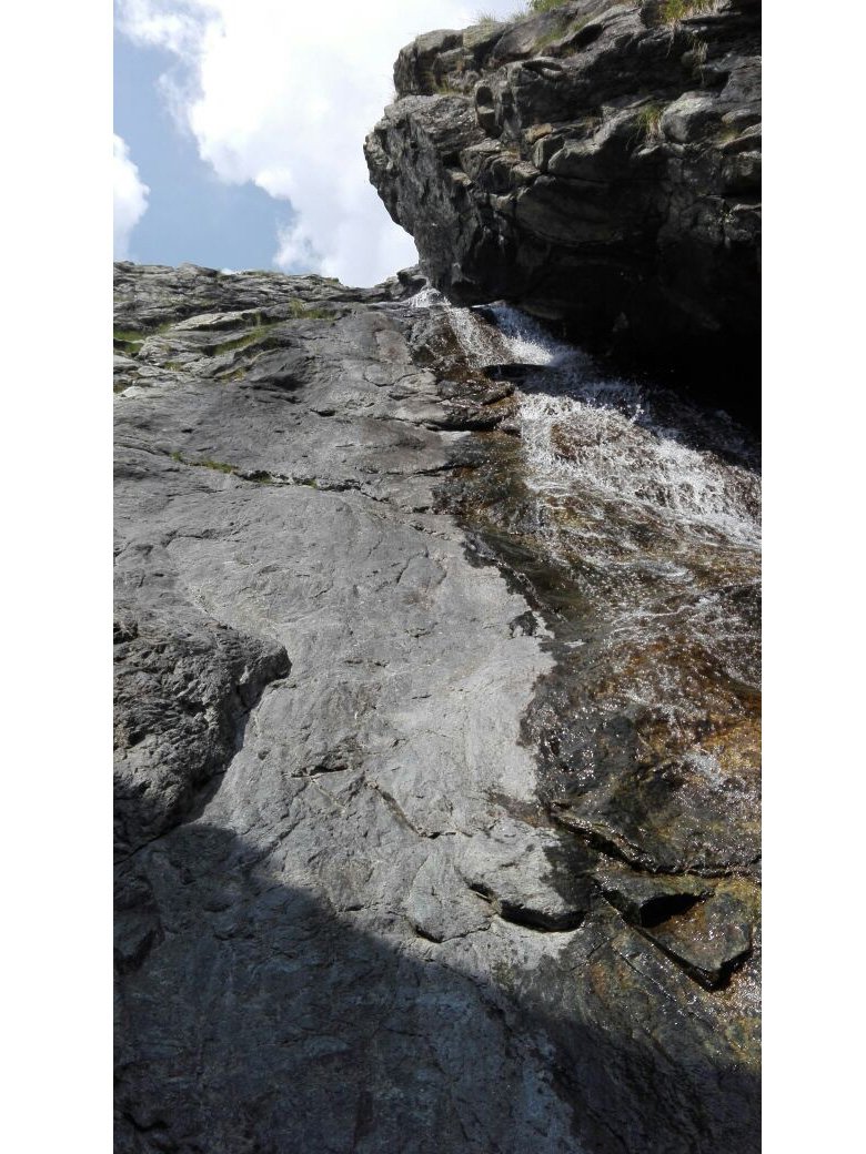 Segue la bellissima e lunga placca a sx della cascata che, con bella arrampicata di 3° porta alla fine delle difficoltà.
