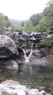 Le difficoltà comunque si attestano sul 1° e 2° grado con un paio di tratti di 3° sempre su roccia molto levigata ma con piccole asperità da ricercare. Uno dei primi tratti con queste caratteristiche, bella placca nera verticale, è aggirabile a sx contornando uno dei più grandi massi erratici mai visti in vita mia. Più in alto, quasi all'uscita sul sentiero normale, il tratto più spettacolare a sx della cascata su lunga placca di 3° grado e paretina con gradini.