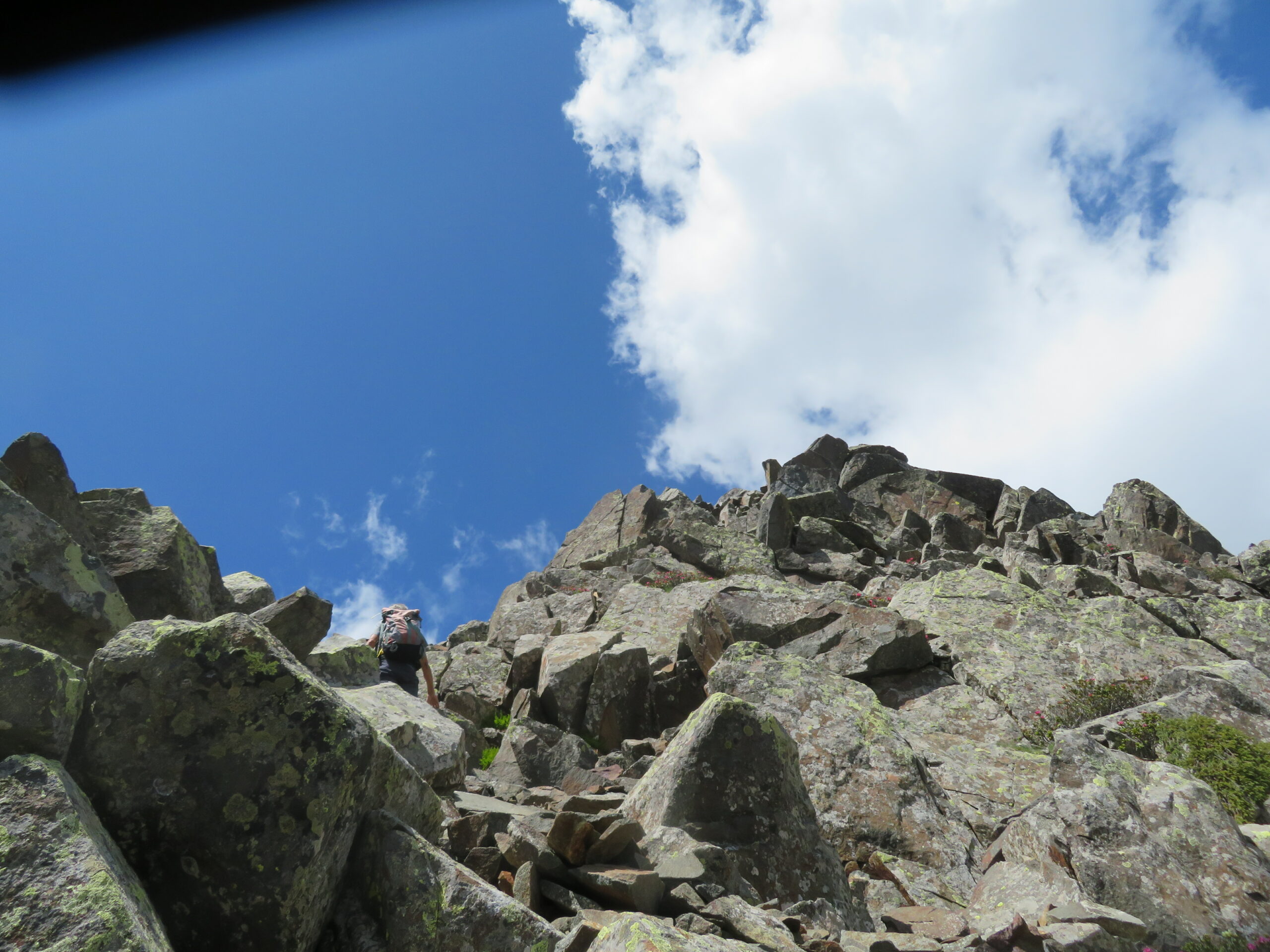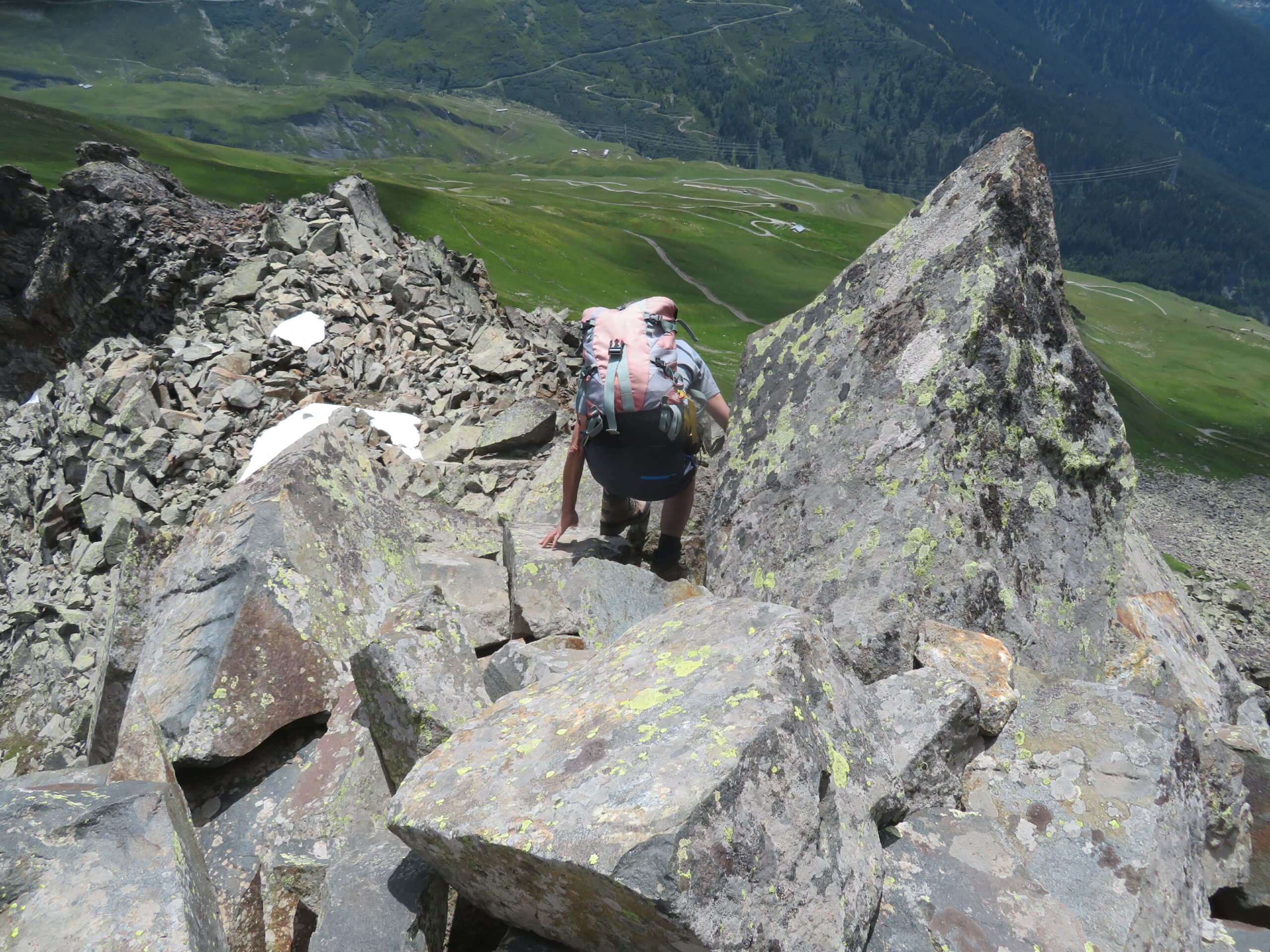 Lungo traverso dal Col del Piccolo S.Bernardo (più precisamente dal vecchio Ospizio). La vetta però è carina e la salita finale divertente. Tempo buono, un pò ventoso.