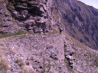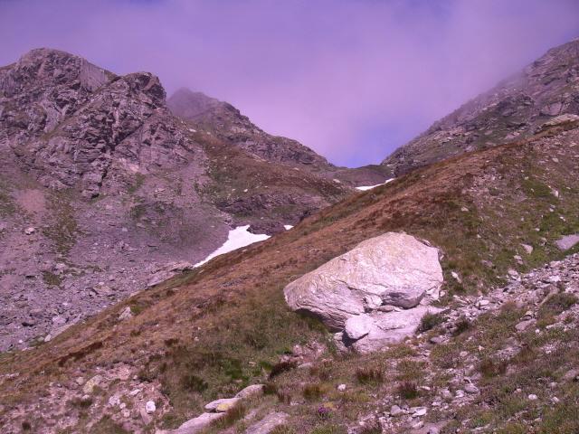 Partiti per salire al Lamet, un vento violento e gelido ci ha consigliato per un percorso meno esposto. Optato per la Val Clarea che avrebbe dovuto essere più protetta, ma anche quì violente fredde raffiche ci hanno infastidito. Fortunatamente i mille metri di dislivello in meno rendevano l’aria sopportabile. Saliti in 3 ore al colle in una valle solitaria. Abbiamo incontrato al colle due francesi che provenivano dal Colle del Piccolo Moncenisio. Vallone delle Savine coperto da nubi di turbolenza da vento; Vanoise invisibile.