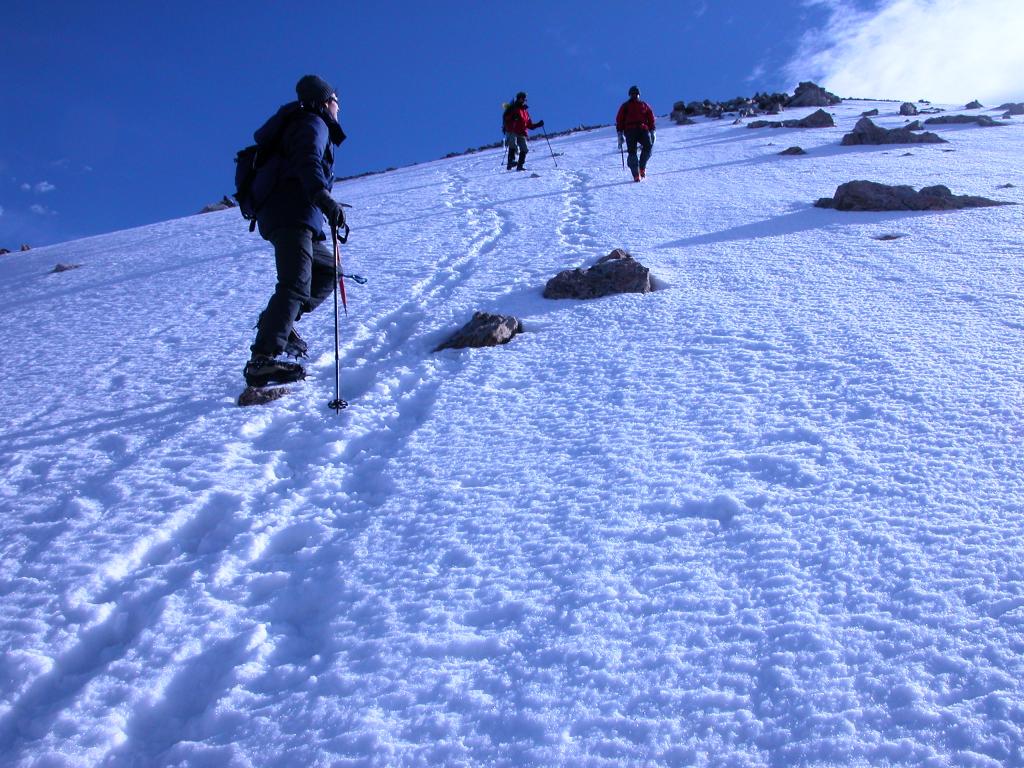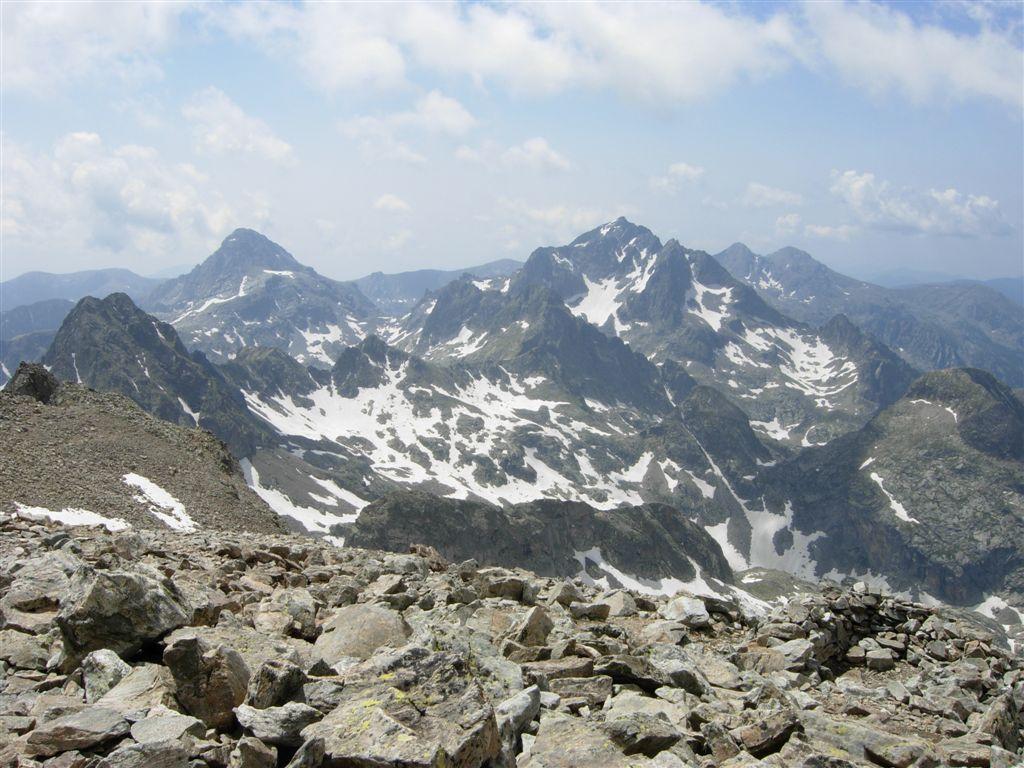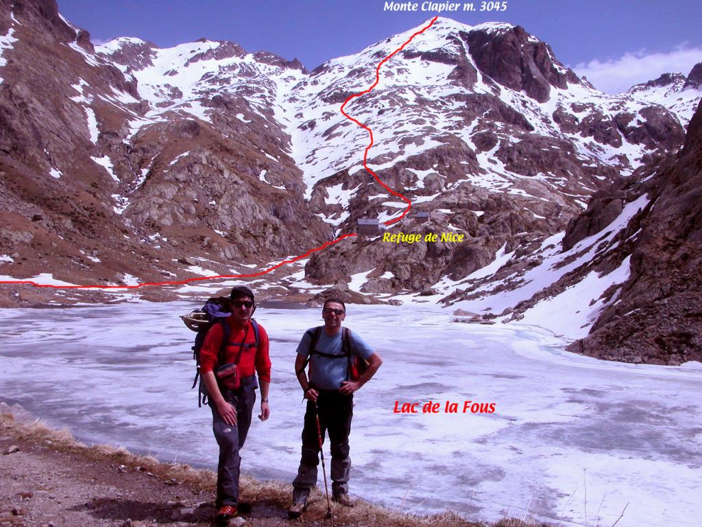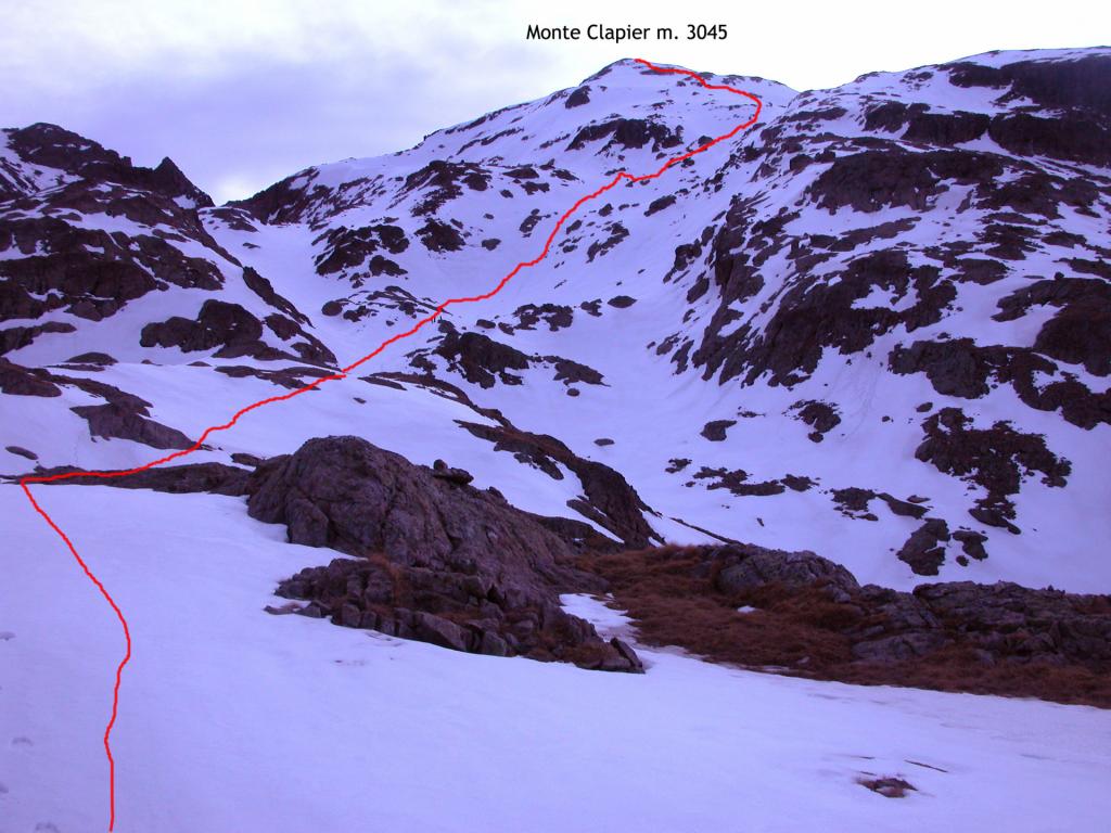 Poi sempre seguendo gli ometti risalire verso destra il versante nord-ovest del Clapier con qualche passaggio su roccia (f) e residui nevai fino a stagione inoltrata fino all’ultimo pendio detrico che si supera su tracce, si giunge infine sulla panoramica vetta.