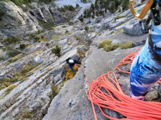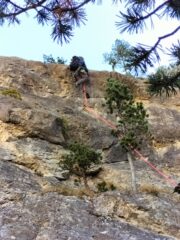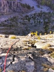 Bella arrampicata, con un 6A obbligatorio sui tiri chiave. Comunque ben chiodata, usato un friend 03 per integrare ma su un solo tiro. Soste collegate con cordoni non nuovissimi usare i propri.