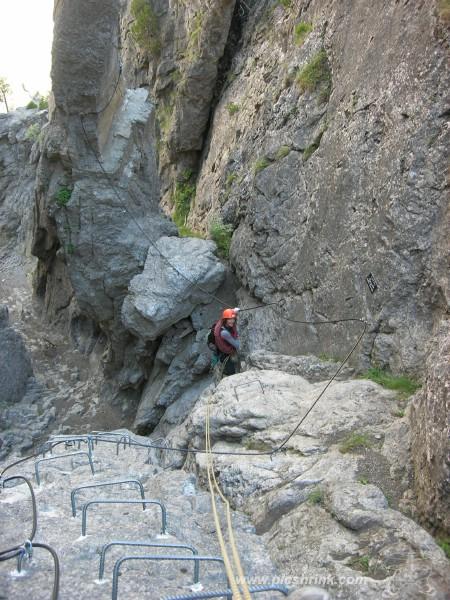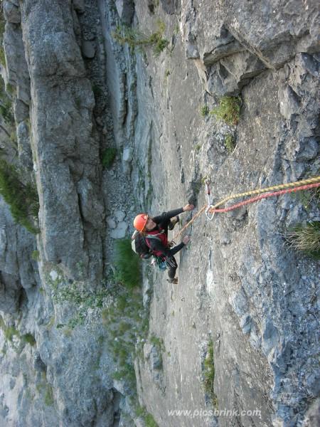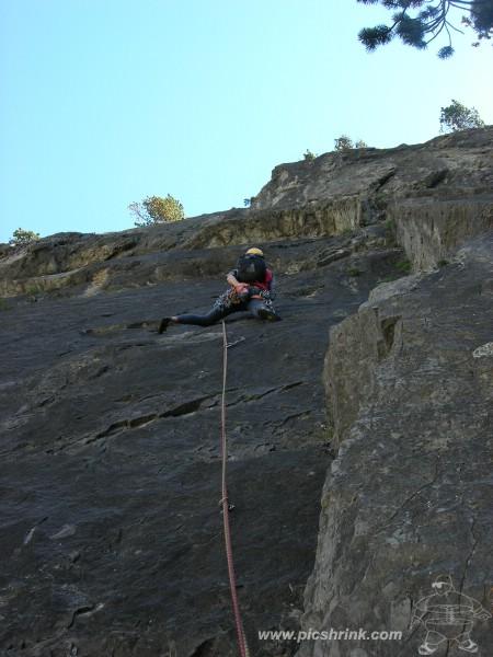 Il luogo lo conoscevamo già avendo ripetuto le altre due linee; questa è la più impegnativa e bella delle tre ed è meglio avere nelle dita qualcosina in più del grado dichiarato in relazione..2 maillon recuperati, uno sul 3° e l’altro sull’8° confermano sia il livello che l’obbligatorietà. Carina ed esposta anche la prima parte di ferrata di avvicinamento (D+) in alternativa al percorso su sentiero. La discesa è un ampio semicerchio da sud verso est nordest per rientrare sul ponte poco a valle dell’auto…non proprio evidente ma sicuramente meglio della calata in doppia. Dalla cima non fatevi illusioni, nella conca a sud c’è un enorme Rif/bar che potrebbe far ricordare (ma molto, molto vagamente) l’inimitabile Rif. del Clot sopra “La Pisse” di La Grave…peccato che a questo di Rocca Clarì ci arrivino comodamente orde di vacanzieri e turisti maleducati in auto, moto e fuoristrada salendo da Cesana o Claviere e che l’invito sui cartelli della cima agli alpinisti sia solo l’ennesima presa per i fondelli per creduloni come noi che usciti dalle vie o dalla cangiante ferrata, pensano magari di essersi conquistata una birra ed una merenda solo per pochi…