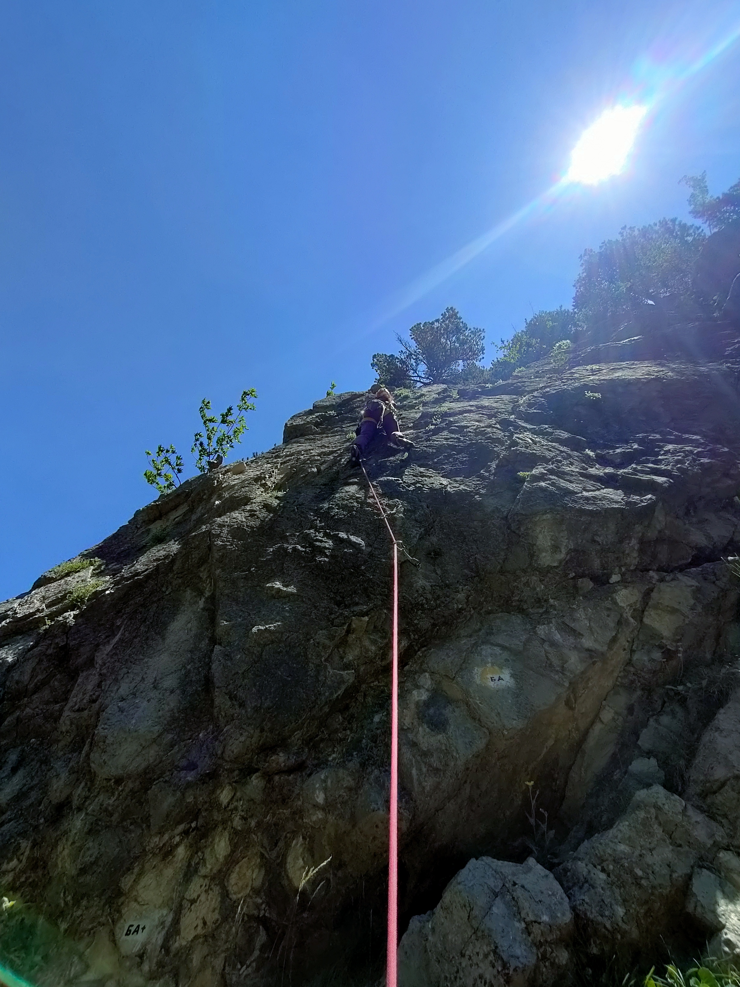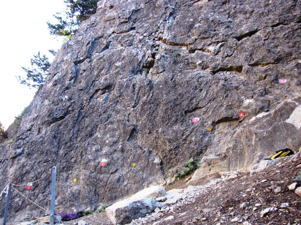 Lasciata l’auto nello spiazzo a sinistra della SS24 prima delle gallerie tra Cesana e Claviere, in pochi minuti si raggiunge la falesia che è divisa in 4 settori tutti recentemente chiodati: