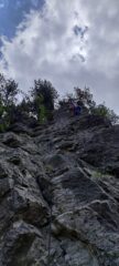 Chiodatura buona e in ordine,roccia un po’ scivolosa,manovra da fare,casco consigliato visto le numerose cengette con pietre instabili e qualche blocco anche grosso che muove.