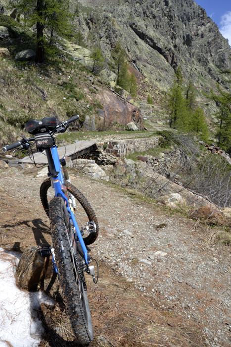 Pendenza sempre dolce, ma il fondo dissestato mette a dura prova l’equilibrio del biker…