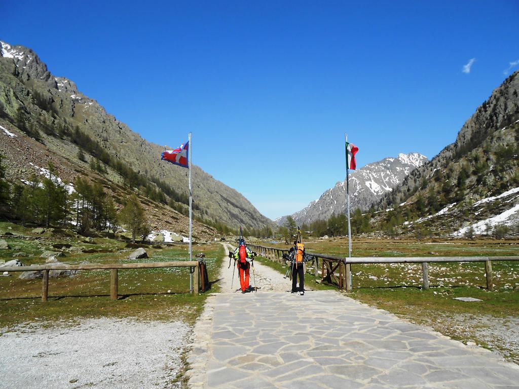 Con Mattia e Giorgio, una gita in compagnia degli sci che svettano costantemente sopra le orecchie, specie per il sottoscritto le cui pelli, una volta inforcati con soddisfazione gli sci in salita, hanno tenuto dai 2000 ai 2200 per poi staccarsi… E’ quasi estate anche x loro!