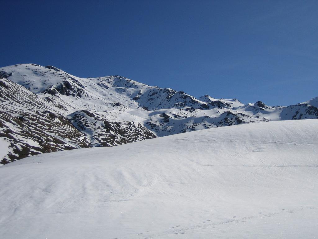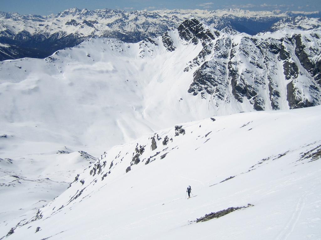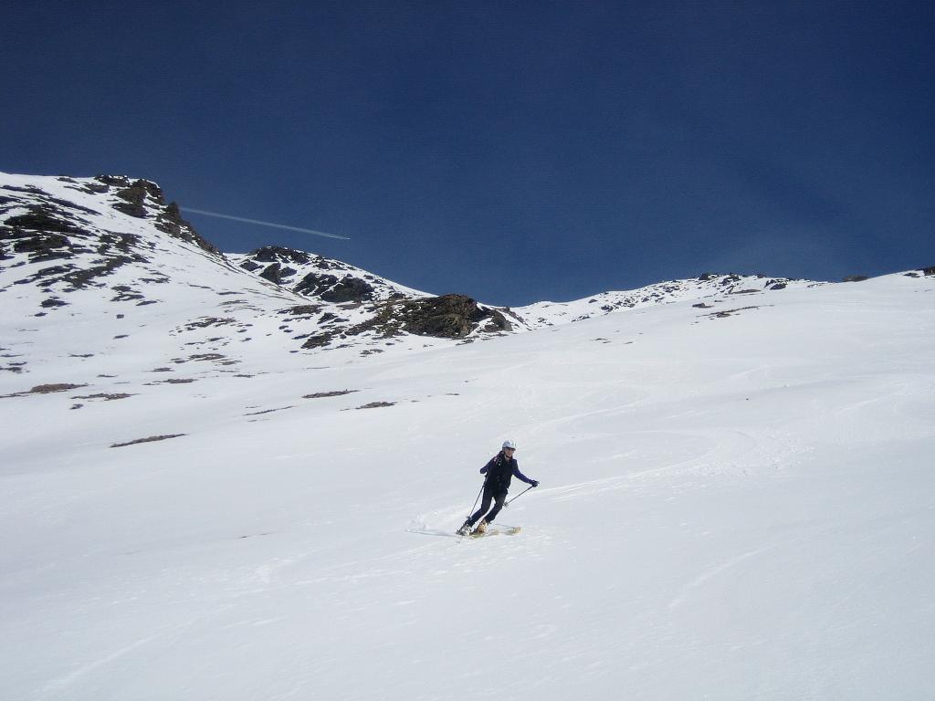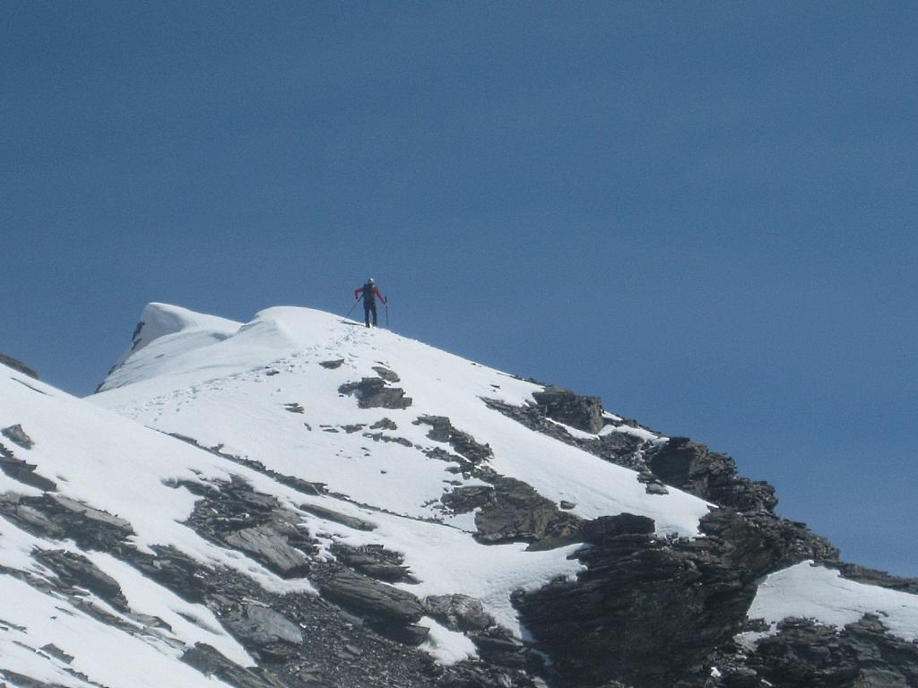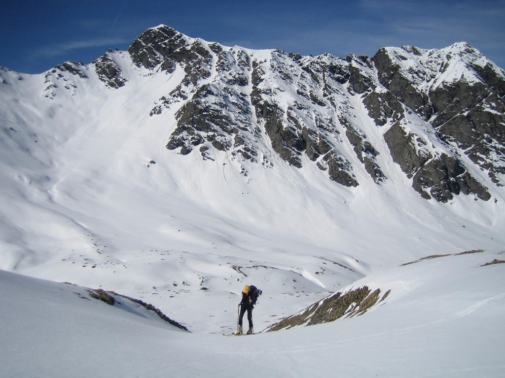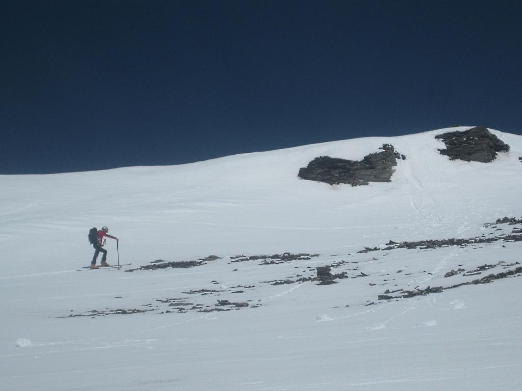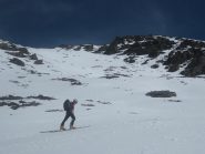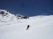 Giunti a quota 2600 m. circa si lascia il percorso verso la Punta Merciantaira 3293 m., si volge decisamente a sinistra e, per valloncelli a tratti sostenuti, si raggiunge la base di un bel pendio ripido la cui risalita permette di raggiungere la dorsale spartiacque con la Val Thuras. Di qui in breve si raggiunge la cima.
