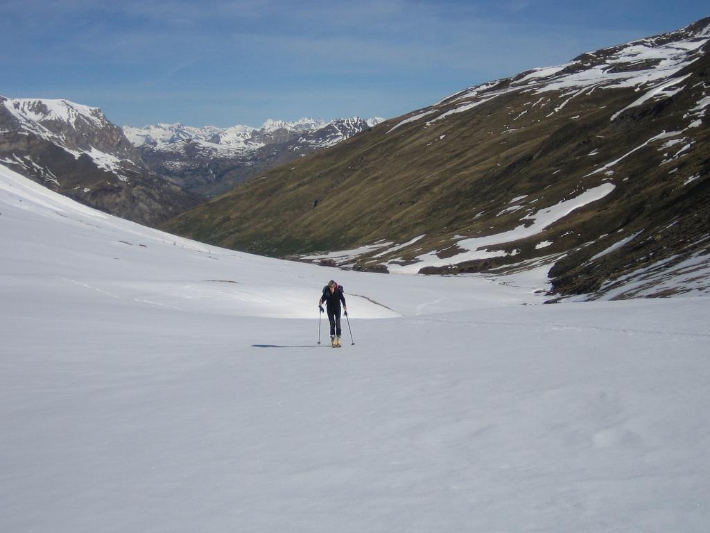 Superato il breve tratto iniziale, con brevi strappi, il vallone si presenta ampio e in moderata pendenza.