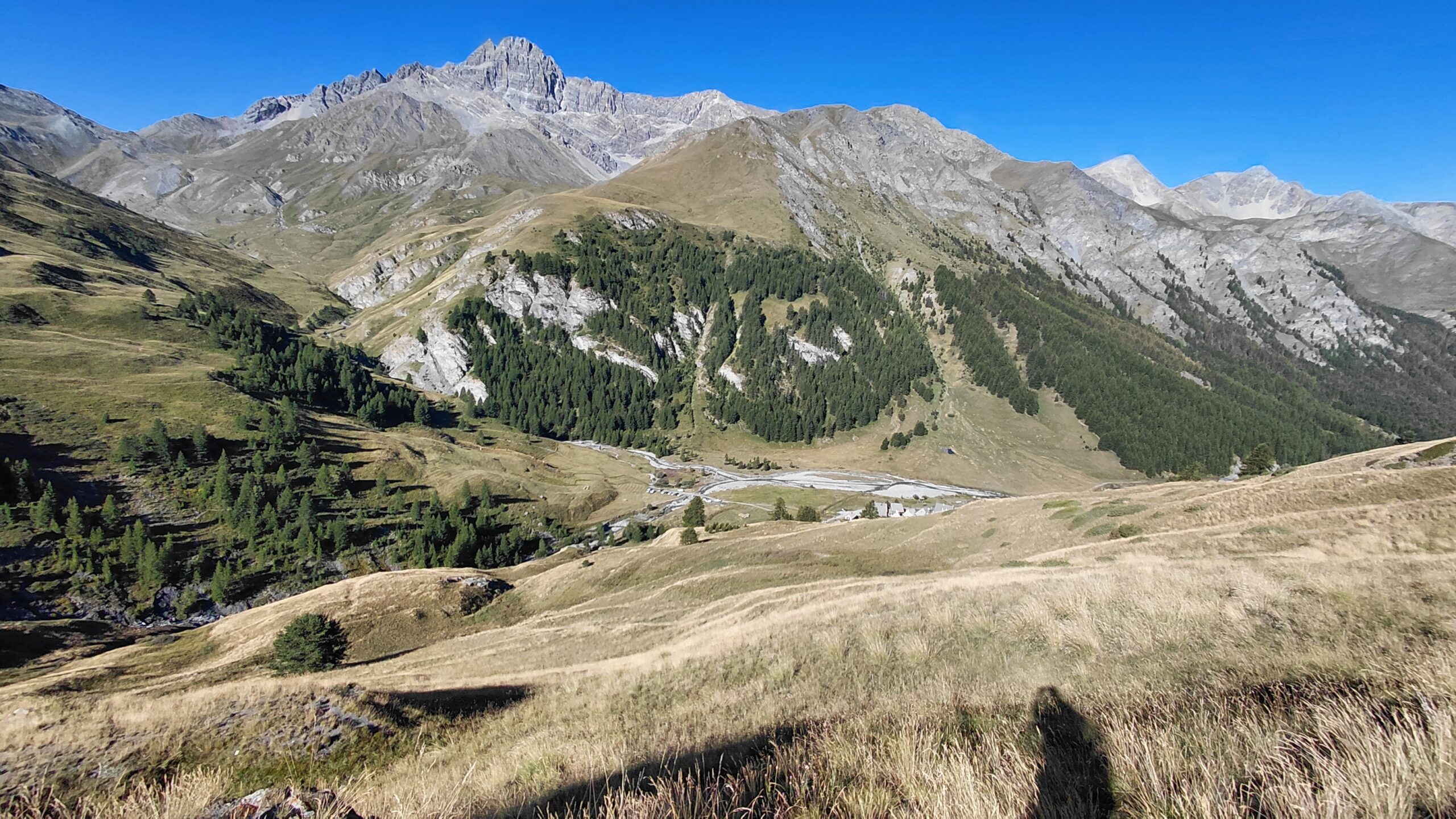 Da questa posizione il resto diventa visibile ed evidente: si vedono il Col de Terre Noire , la cima omonima alla sua sinistra, e la Cime de Clausis alla destra del passo.