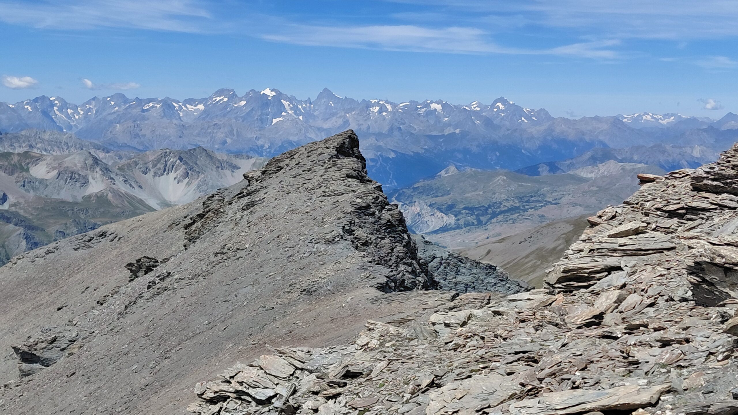 Verso est, a una decina di minuti, si vede chiaramente la Cime de Chabrières (3246 m).