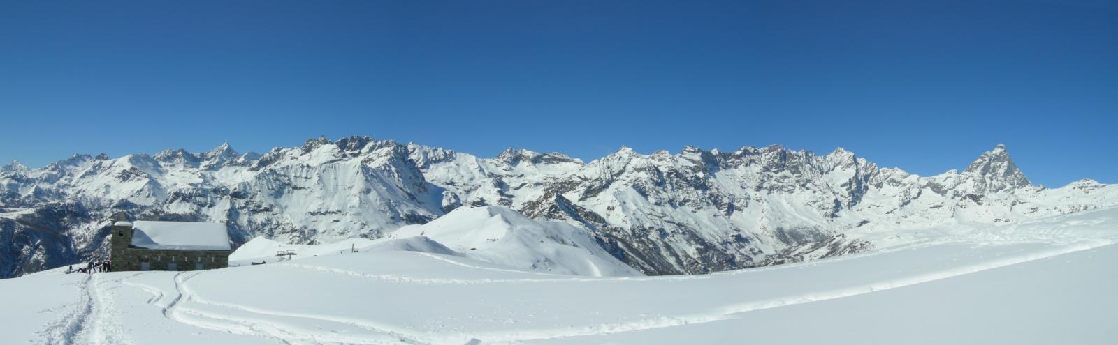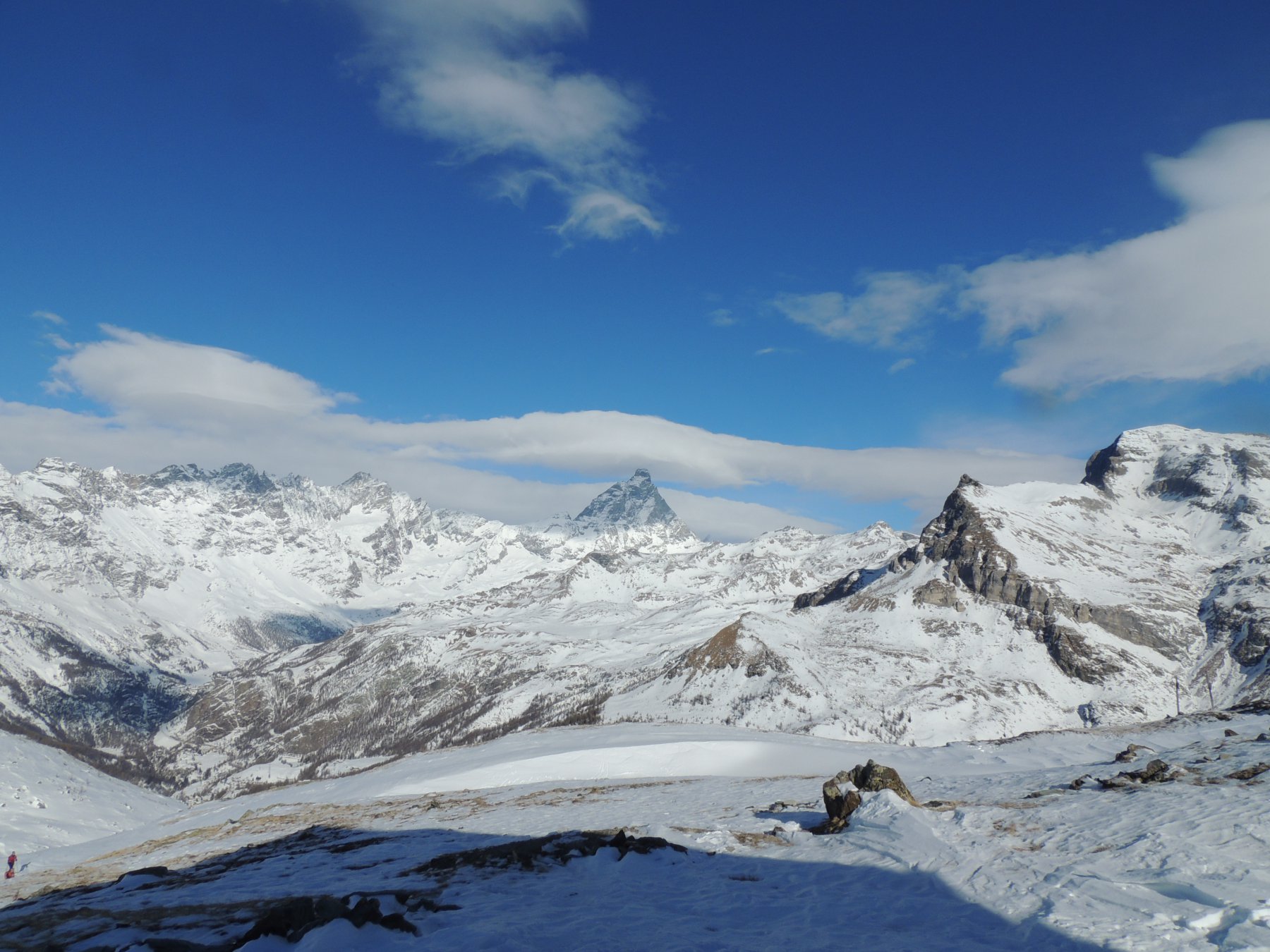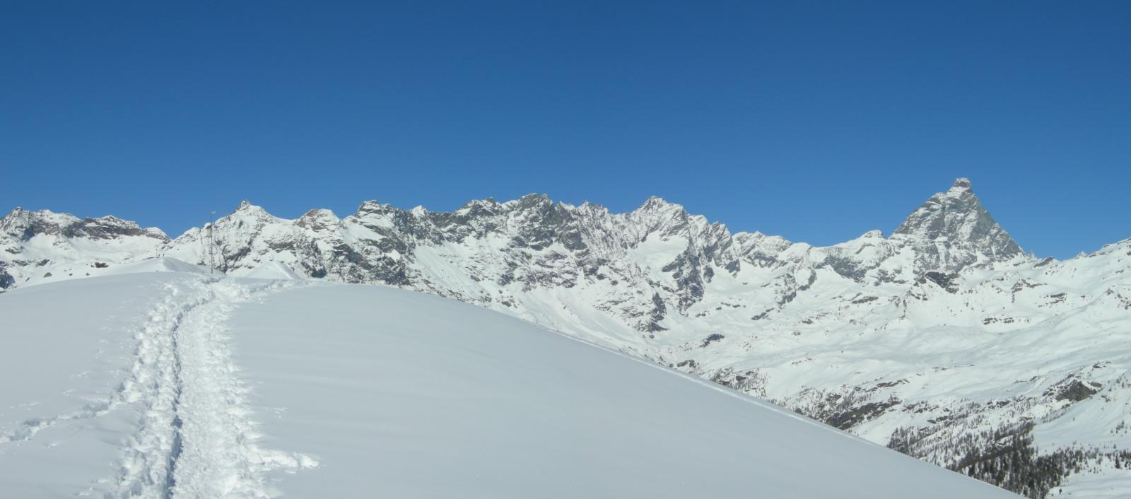 Stupendo il panorama su Cervino, Grandes Murailles e le vicine vette della Roisetta e di entrambi i Tourmalin.