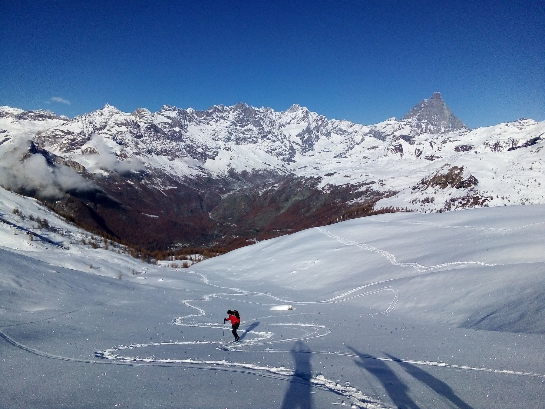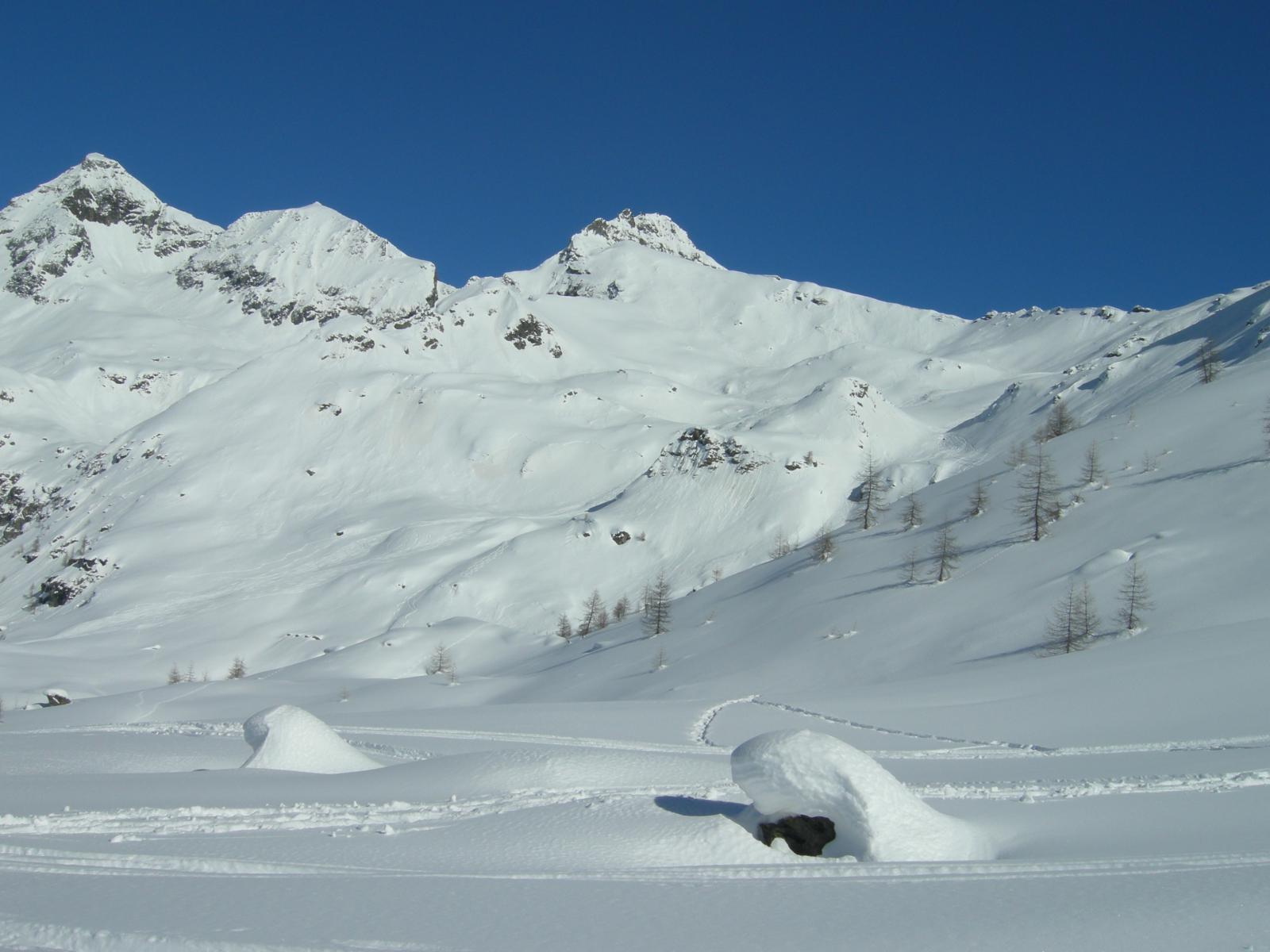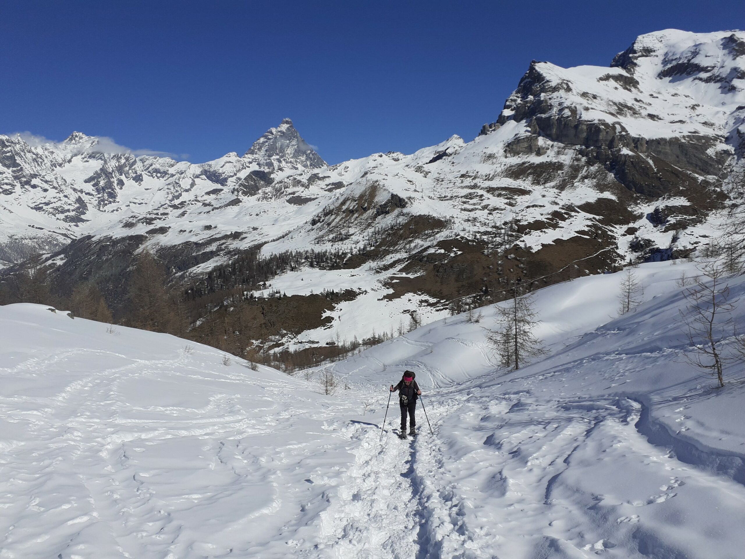 Stupendo il panorama su Cervino, Grandes Murailles e le vicine vette della Roisetta e di entrambi i Tourmalin.
