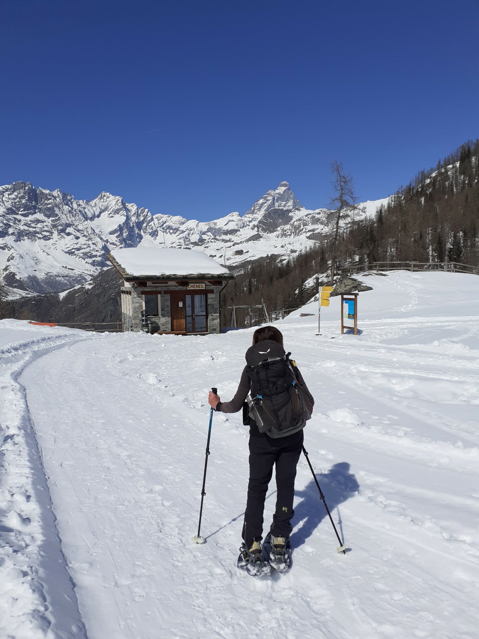 Si segue la traccia, generalmente ben battuta, che sale dal posteggio fino al pianoro del villaggio di Cheneil.