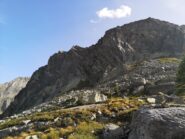 Giunti sotto al rifugio, prendere un sentierino, visibile a tratti, che attraversa il valloncello acquitrinoso, seguendo i tubi dell'acqua. In prossimità di una paretina rocciosa (che ricorda una falesia) prendere per sinistra restandovi sotto e seguire gli ometti fino ad arrivare a un canale con massi e ghiaia. Qui ripiegare leggermente a destra puntando alla parete (sempre seguendo gli ometti). L'attacco della via è appena sopra a un masso con ometto.