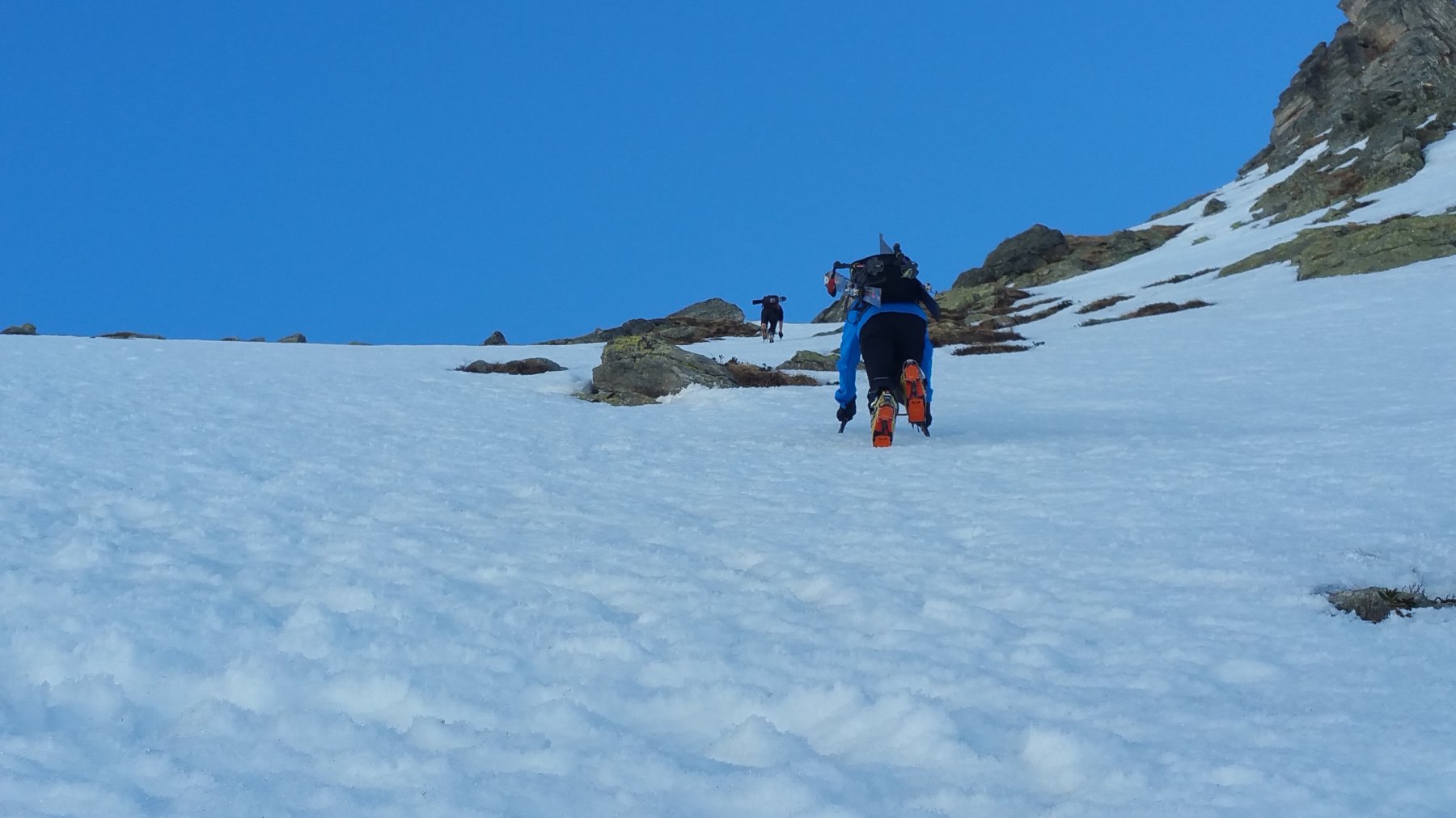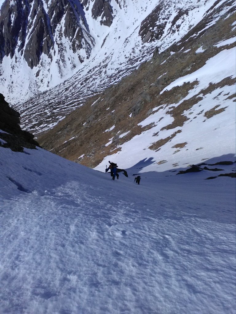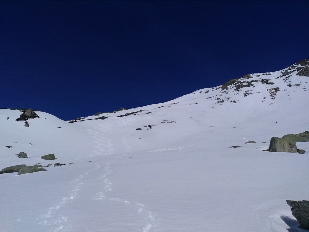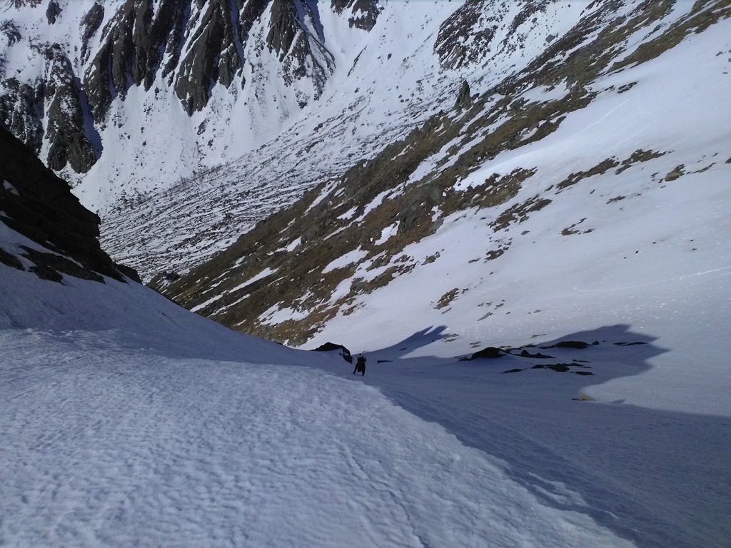 Da Grange della Valle seguire il sentiero per il rifugio Levi, quindi per il colle del Niblè / Bivacco Blais; finito il bosco, circa a quota 1950, imboccare l’evidente canale sulla destra (faccia a monte); è il terzo canale sulla destra che si incontra dopo aver imboccato il sentiero; il canale alterna tratti a 30 gradi e tratti a 40-45, per poi terminare nei 100mt finali intorno ai 50-55; la lunghezza del canale è di circa 600mt; al termine si prosegue su largo crinale fino al passo del Clopacà; possibiità di proseguire fino a punta Niblè. A seconda delle condizioni è possibile scendere dal canale (tratto iniziale probabilmente da dis-arrampicare), oppure dal versante sud del Niblè, considerato anche che poco dopo l’uscita dal canale si incrocia il sentiero estivo per il passo Clopacà