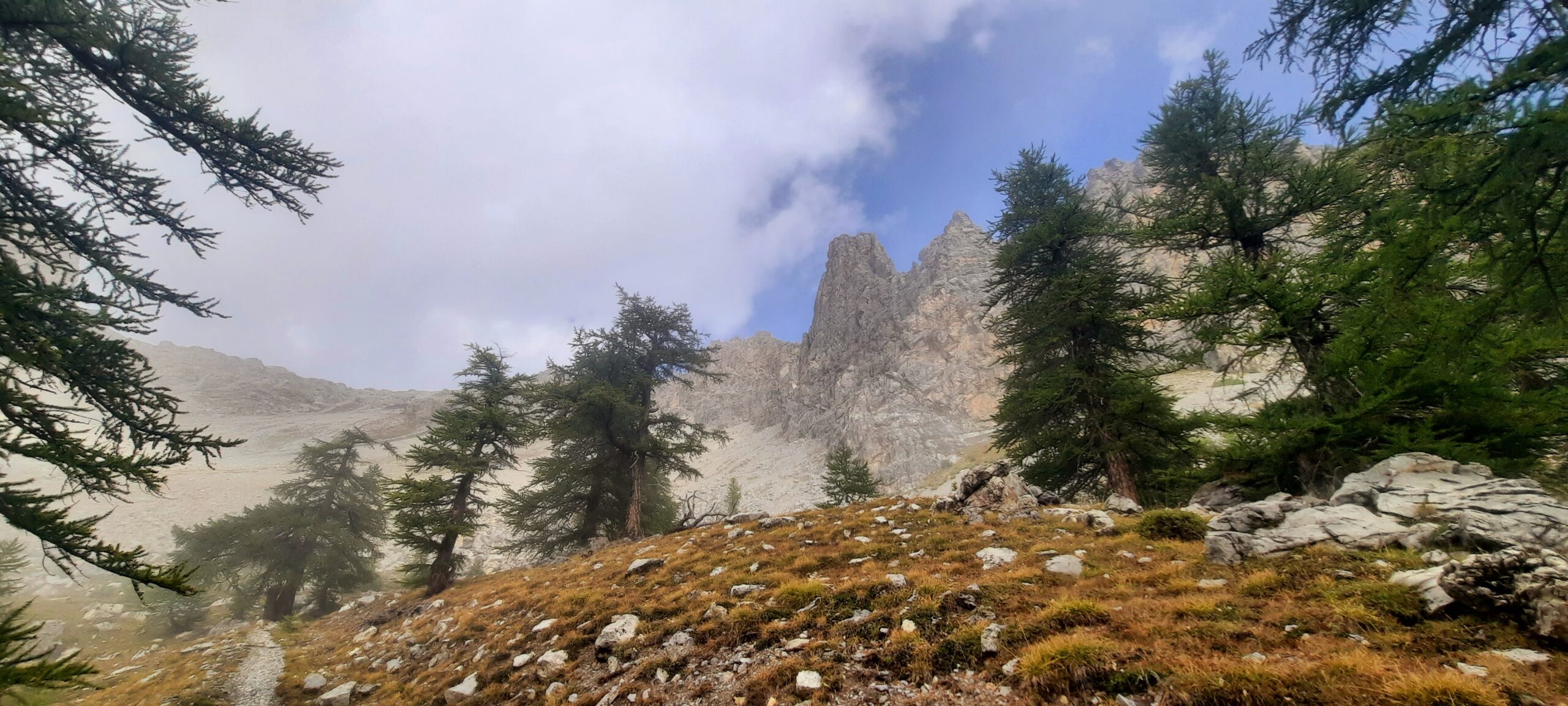 Si scende il vallone detritico dall’aspetto dolomitico, mantenendosi sulla sinistra e quindi si arriva alla sterrata che conduce a Pourachet (sotto la Croce San Giuseppe) e si ritrova poi il sentiero 701 per scendere a Chateau Beaulard.